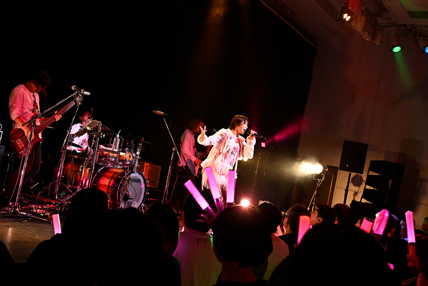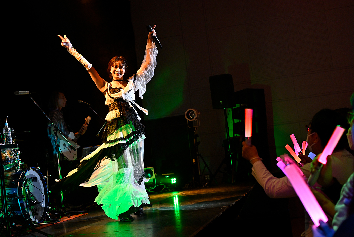 駆け抜けるようなビートに乗った歌声が胸を騒がせる。心地よい音の風を感じる『Bubble Ring』で星名美怜は、朗々とした歌声を響かせ、場内中の人たちの身体を揺らしていた。たとえ愛らしい表情を見せていようとも、つねに攻めたロックのイズムを感じる。その姿勢が、この会場の空気をみずからリードしていく勇ましい姿にも表れていた。