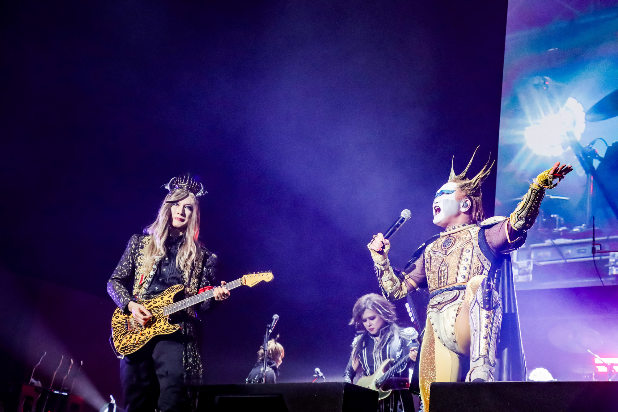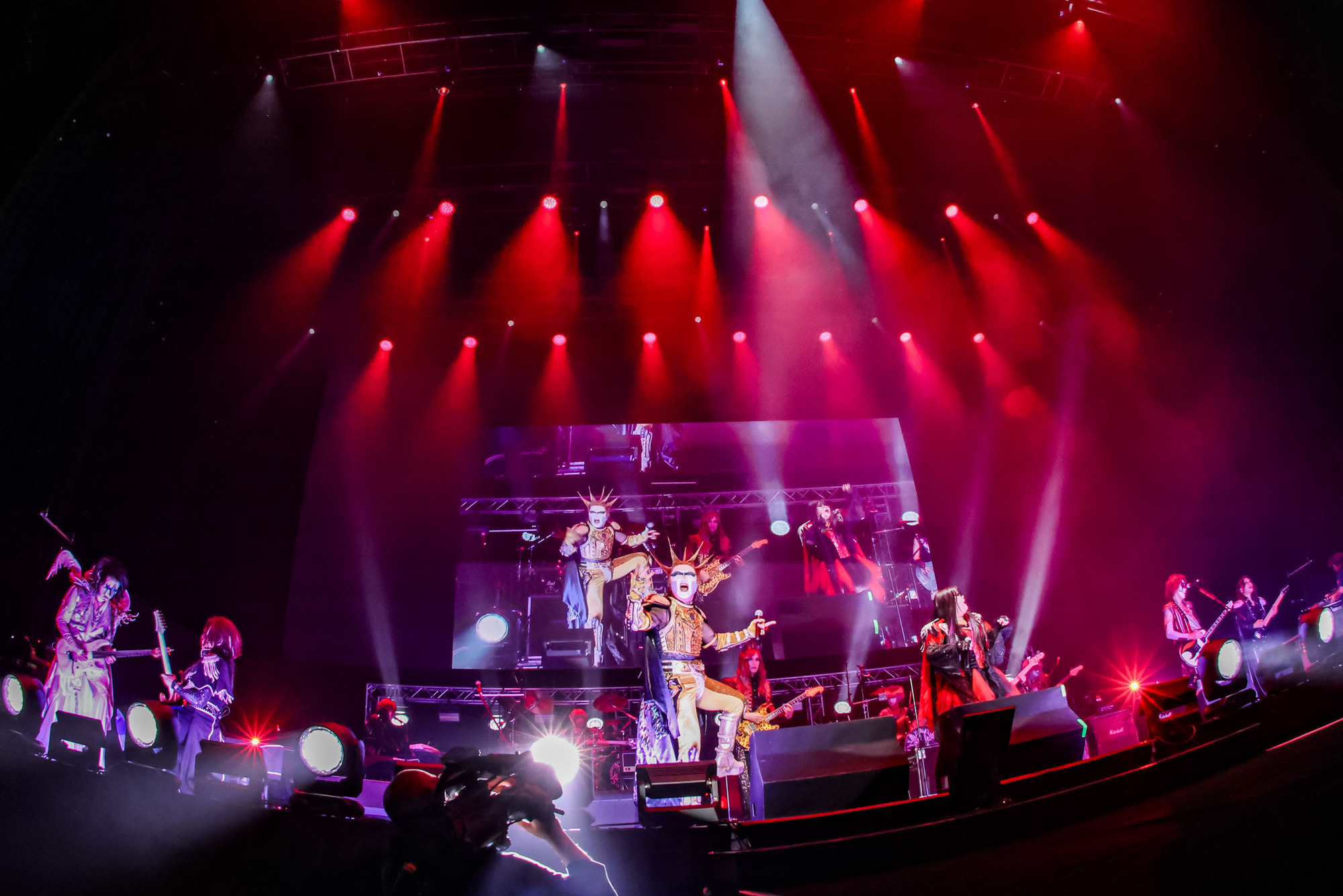 ステージ中央奥高くにある玉座に鎮座されている陛下に改臟人間たちが跪く。やがてヴォーカルのシエルが、陛下ご愛用のアニマル柄の武器(ギター)を陛下へ・・・、そしてメンバーがそれぞれ立ち位置に着く、その表情は自信に満ち溢れている。