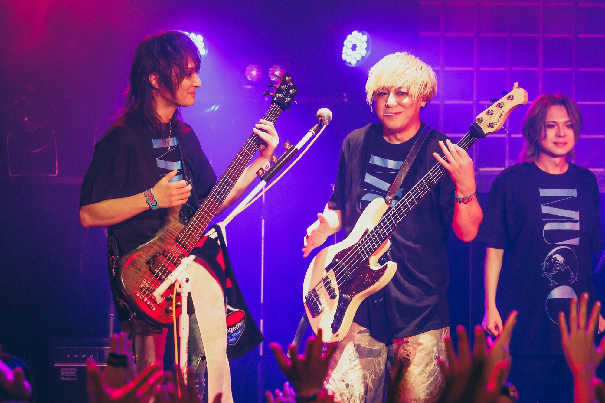 その事実を踏まえると。逹瑯がこのように煽ってから演奏が始まり、YUKKEのダウンピッキングがビシッと決まっていた「Round & Round」はやたらと感慨深く、ヴィジュアル系という言葉が生まれる前の時代にお化粧バンドだの黒服バンドだの、あるいは名古屋系だのと呼称されていた先駆者たちへのオマージュとして聴くことが出来たのだ。