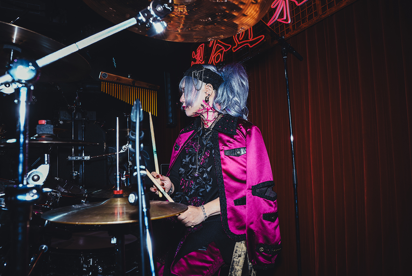 柳と弱虫たちとの絶叫のコール&レスポンスと、天音のギターの音が火を吹くのを合図に『「限界です」』が飛びだした。絶叫した声を上げて左右にモッシュすれば、中指を立てて「ぶっ込め!」と叫びながら飛び跳ねる弱虫たち。もう限界を超えてイクところてまでイカないと、濡れた感情の収まりがつかない。「人間捨ててかかってこい」と煽る柳。最後にミスイは『ヒトニアラズ』をぶつけ、最後の最後まで会場の床を大勢の弱虫たちが踏み鳴らす景色に染め上げて逝った。歌い終わり、「HAPPY BIRTHDAY TO ME」とボソッと呟いた柳の言葉も印象深く耳に残っていた。