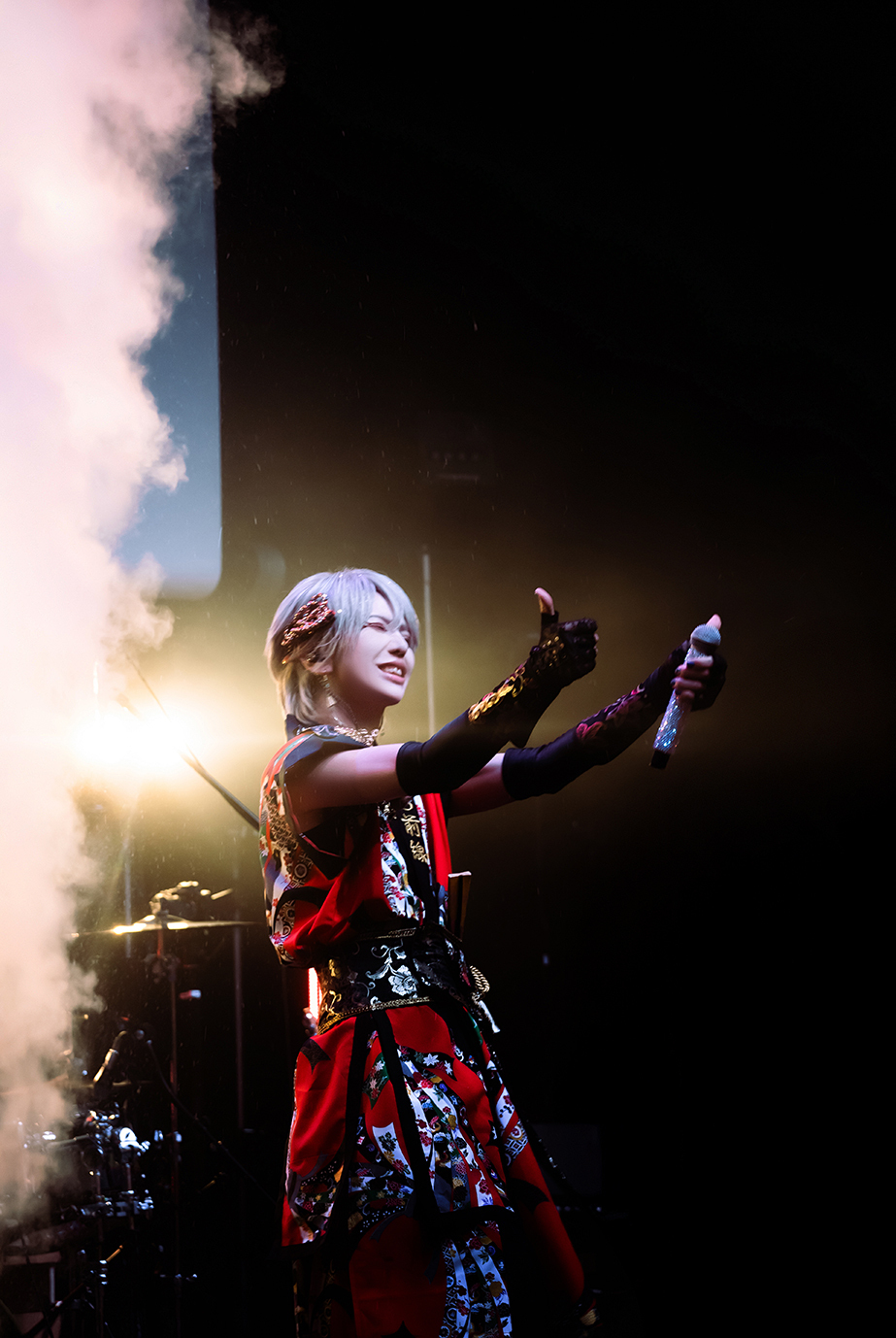 続いて始まったのが『演歌歌謡曲メドレー』3人が入れ替わりで懐かしの曲を歌いあげ続け様に入ったのが、和風歌謡ロックともいえる大作『大桜生』左右同時に開かれる腕と拳の力強さに観客は呼吸を忘れる程に心を掴まれてしまう。