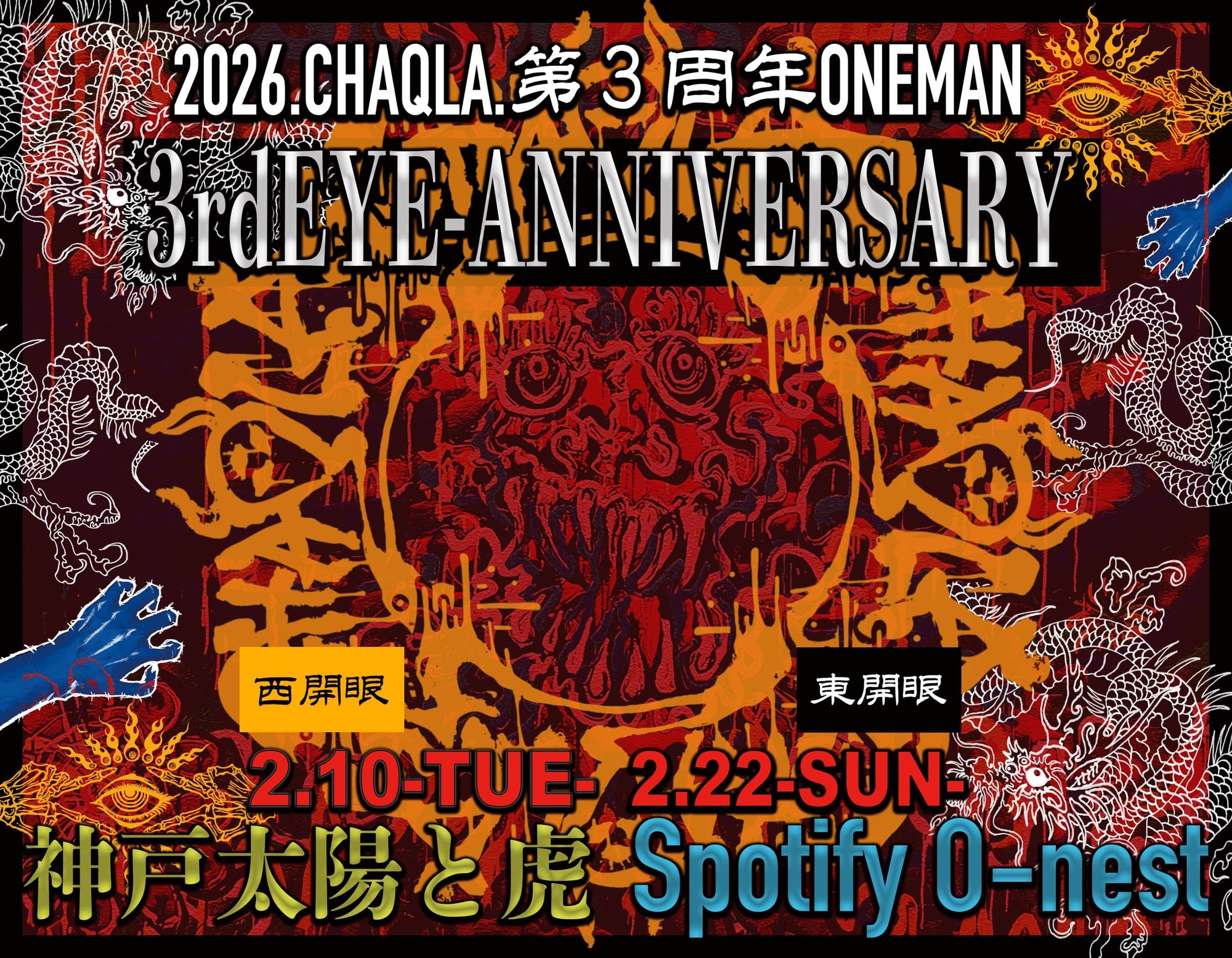 CHAQLA. 『第3周年ONEMAN 【3rdEYE ANNIVERSARY】』 西開眼&東開眼!開催決定!!