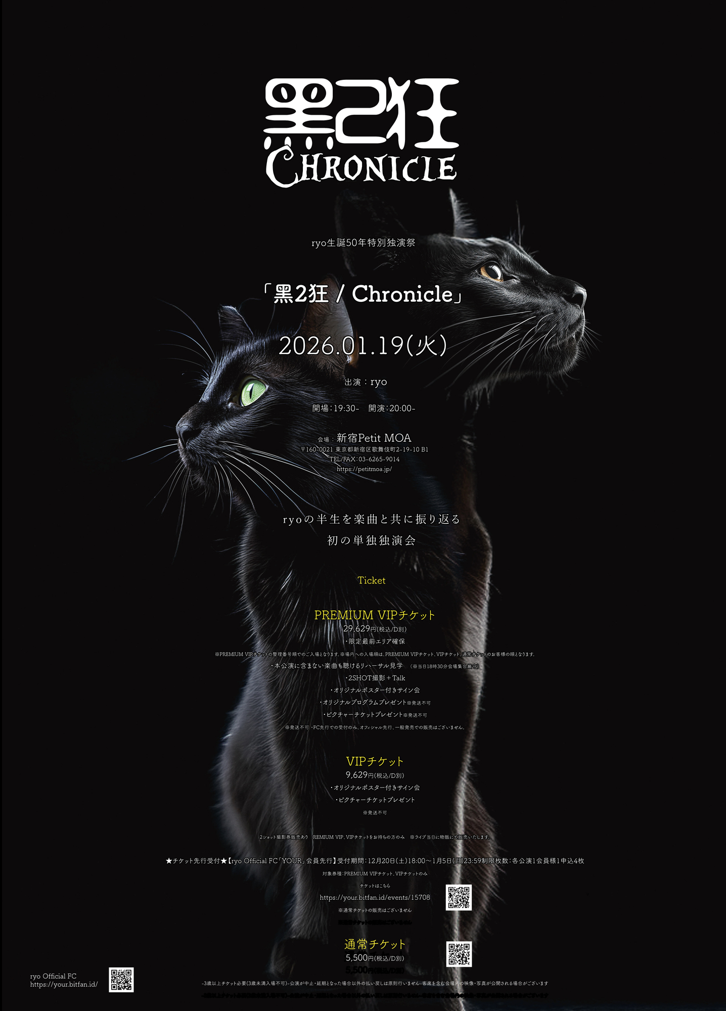 ryo生誕50年特別独演祭「黑2狂 / Chronicle」開催決定!
