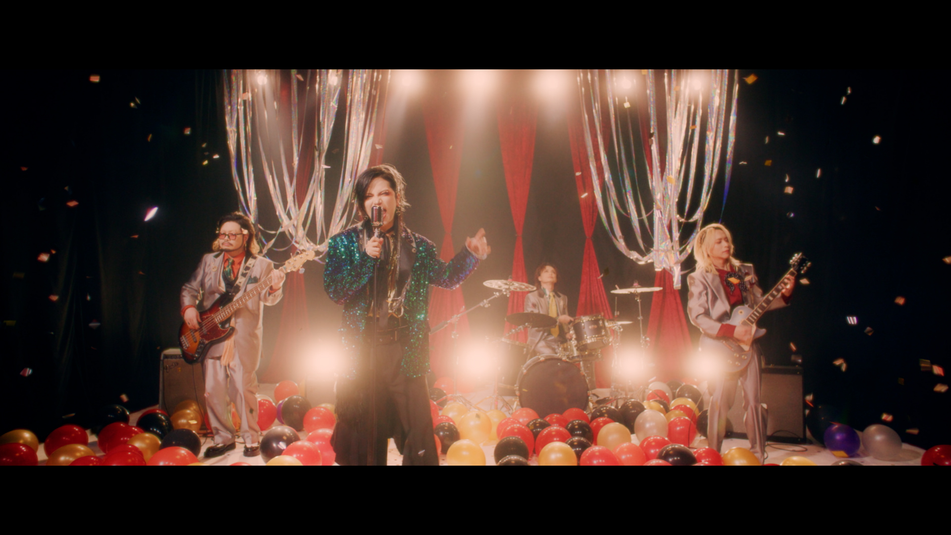 60〜70年代のダンスホールのバンドマンのような出で立ちのメンバーが煌びやかなスタジオで演奏するシーンを中心とした映像は、曲のキャッチーさと相まってポップでカラフルな世界を展開している。