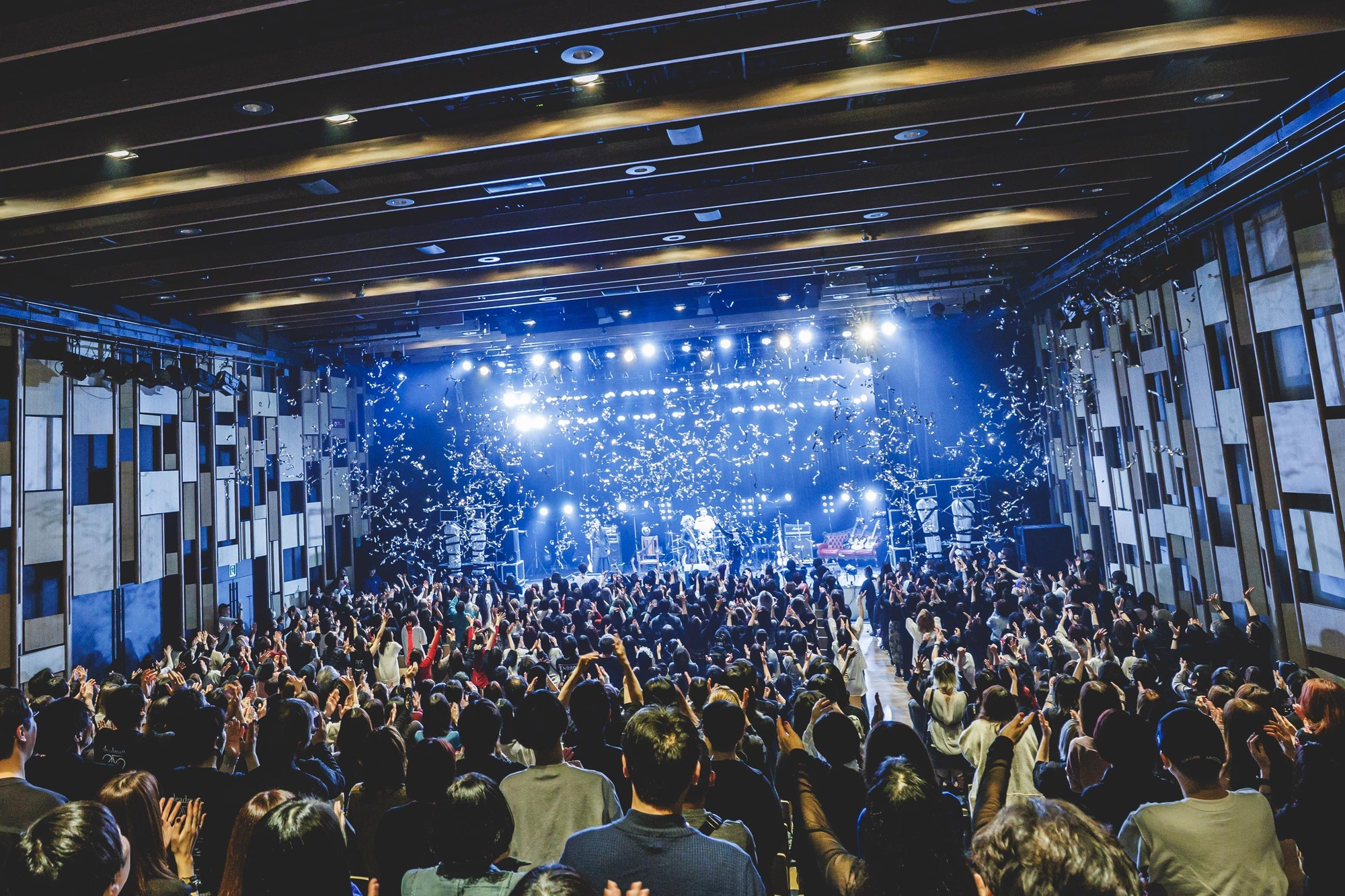 記念すべき初ホールワンマンで最後に聴けたのは、眩しいくらいの明るい光が舞台を照らす中で〈白昼に降る雨 虹は無いけれど 楽園の扉は開けておくよ ずっと 〉と歌われた「雨降りの悪い夢」。