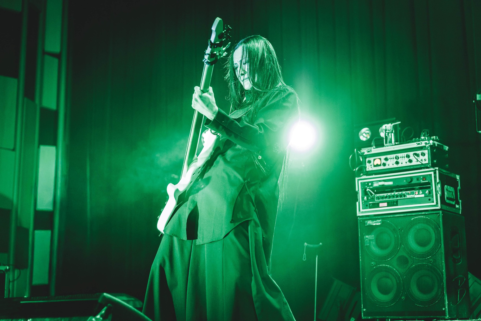 たとえば「ミツバチ」で眞呼が椅子に座りながら歌ってみせた場面をはじめとして、彼がパントマイム的なパフォーマンスを展開してくれた「溺れる魚」などでも視覚的な演出面がこれまで以上により強化されていたせいか、予想していた以上にdeadmanがホール映えするバンドである、ということをきっとこの場に居合わせた人の多くが感じたはず。