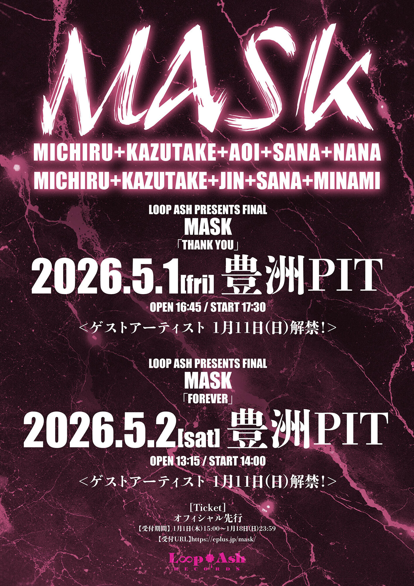 MASKが2026年5月1日(金)、2026年5月2日(土) 東京・豊洲PITにてライブを行うことが発表されれた!