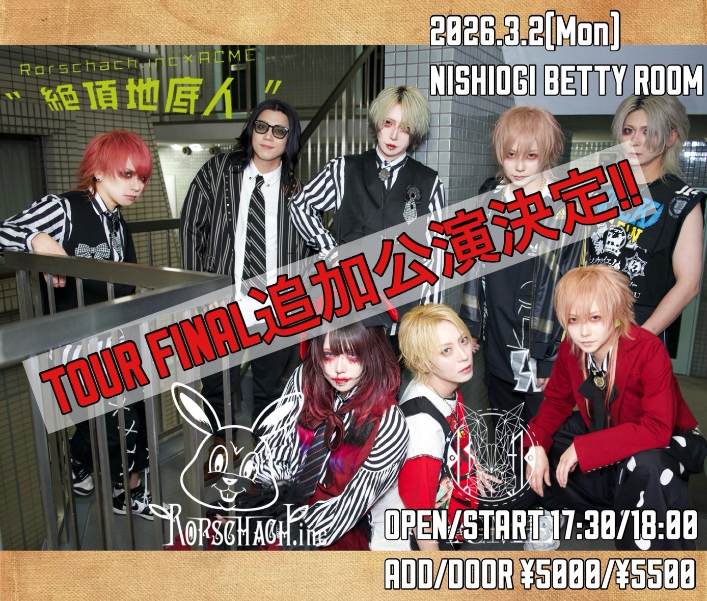【ACME】毎年恒例イベント「Rorschach.inc」との対バンイベント『絶頂地底人』2026年2月に「2-MAN TOUR」として開催決定!