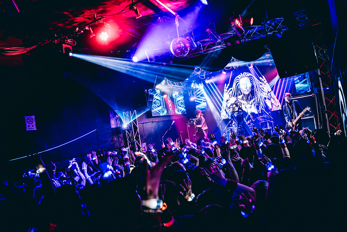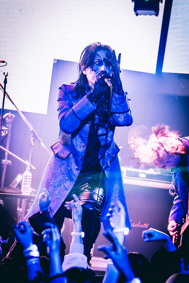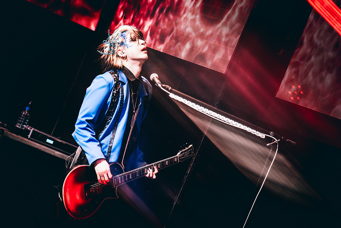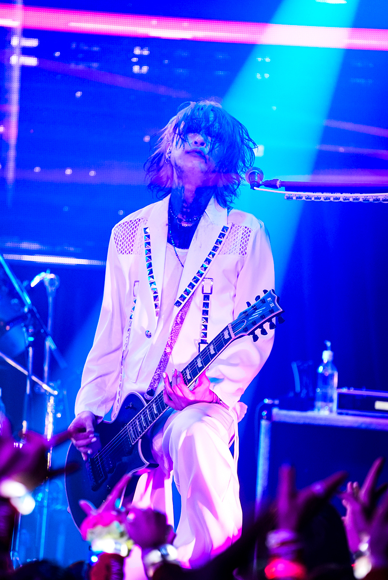 ビジョンに映し出された青龍が開演までを見守る『BLUE NIGHT』は、前日の余韻を引き継ぐように「ARROWS」でスタート。ジャケットを羽織ったTAKAとKaryuを中心に、青と黒でシックにキメた4人は精悍で気品に溢れた出立ちだ。間髪入れずに「FREAK PARADE」、「HameIn」とヘヴィチューンでフロアの熱気をあげ、オーディエンスの士気を掌握する。