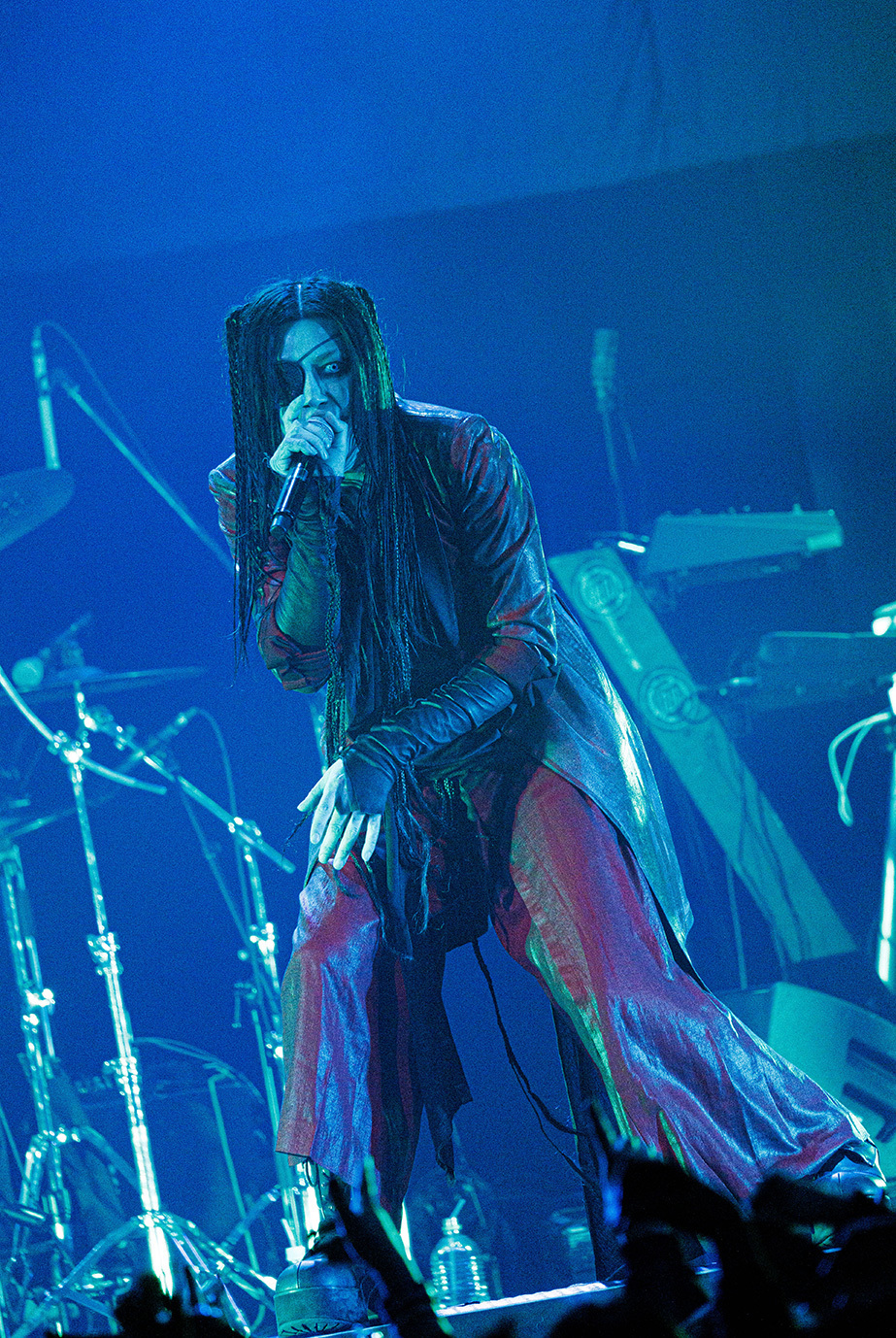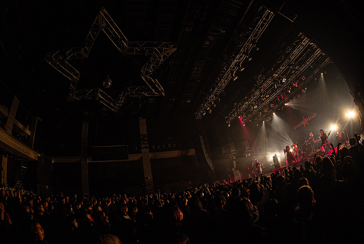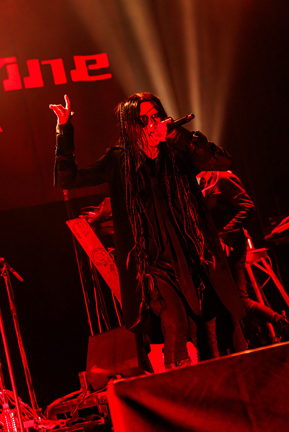 初日の公演は団長とmachineでサポート・ドラムを務めるCHARGEEEEEE..による軽妙なMCを経て、JILUKAのライブから始まった。現在のJILUKAは“EGM(エレクトロ×ゴシック×メタル)”というコンセプトのもとに独自の音楽性を構築していることで知られている。Ricko(vo)のアグレッシブなシャウトやSena(g)のソリッドかつフラッシーなギター、Boogie(b)とZyean(dr)による重厚なリズム・セクションなどを押し出したハードネスとメロディアスなサビや荘厳なオーケストラ、デジタル・テイストなどを融合させた楽曲は非常に魅力的だ。ドラマチックなサウンドとメンバー全員が織り成す激しいステージングを活かしたJILUKAのライブの駆り立て力は圧倒的だし、今回のライブでは「Screamer」にKiyoshiが飛び入りしたことも相まってオーディエンスは熱いリアクションを見せ、<ULTRA BEAST HAMMER BATTLE>は上々の滑り出しとなった。