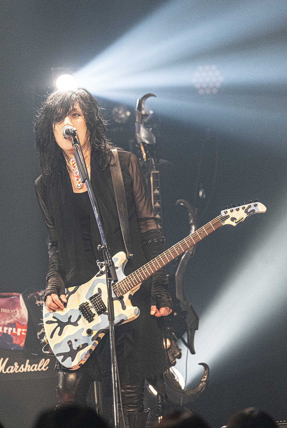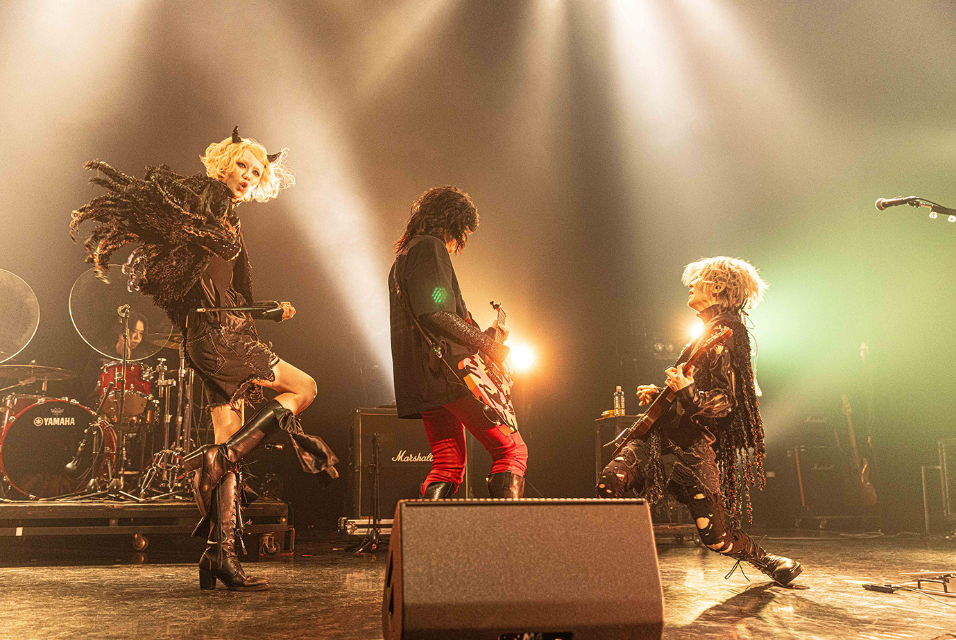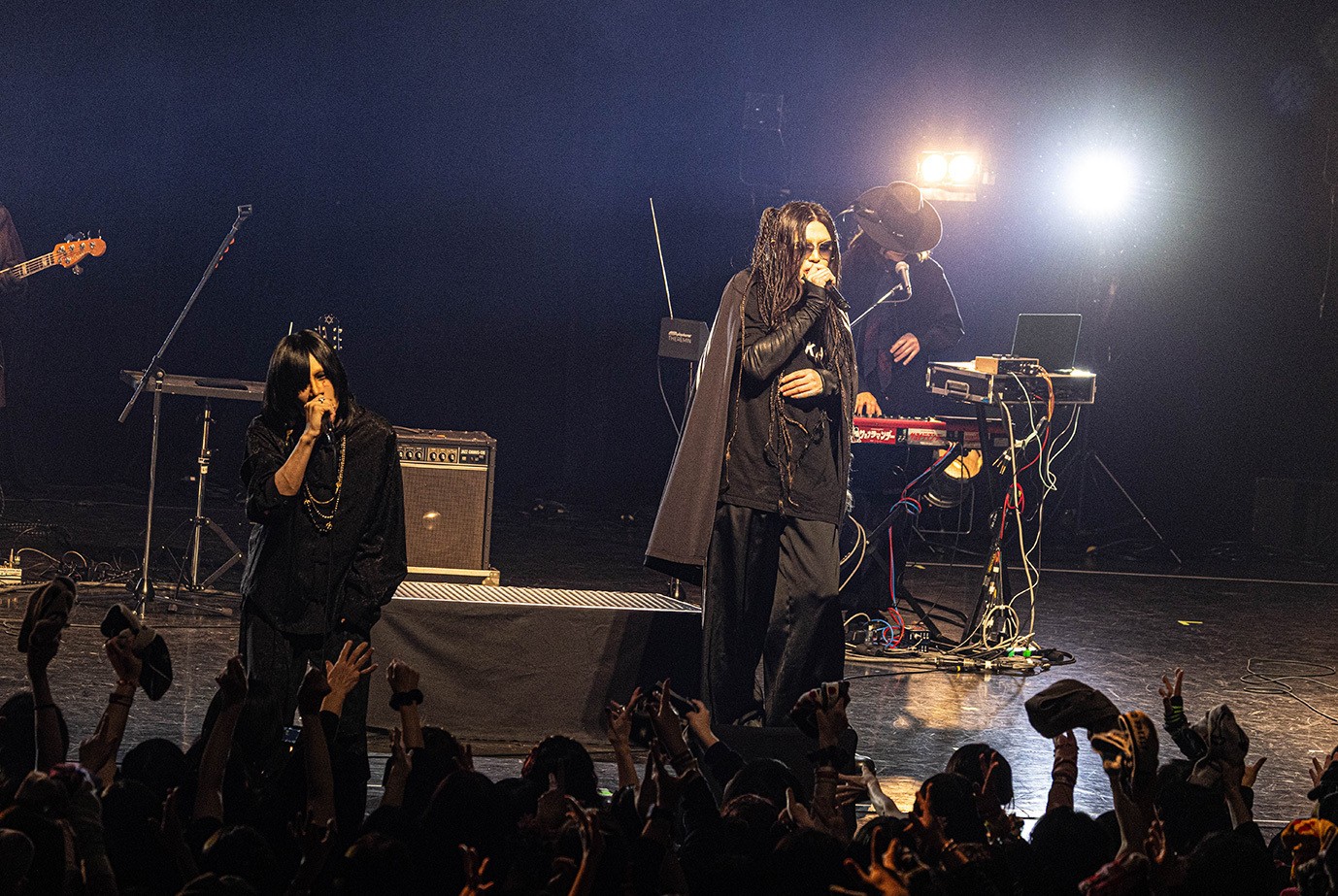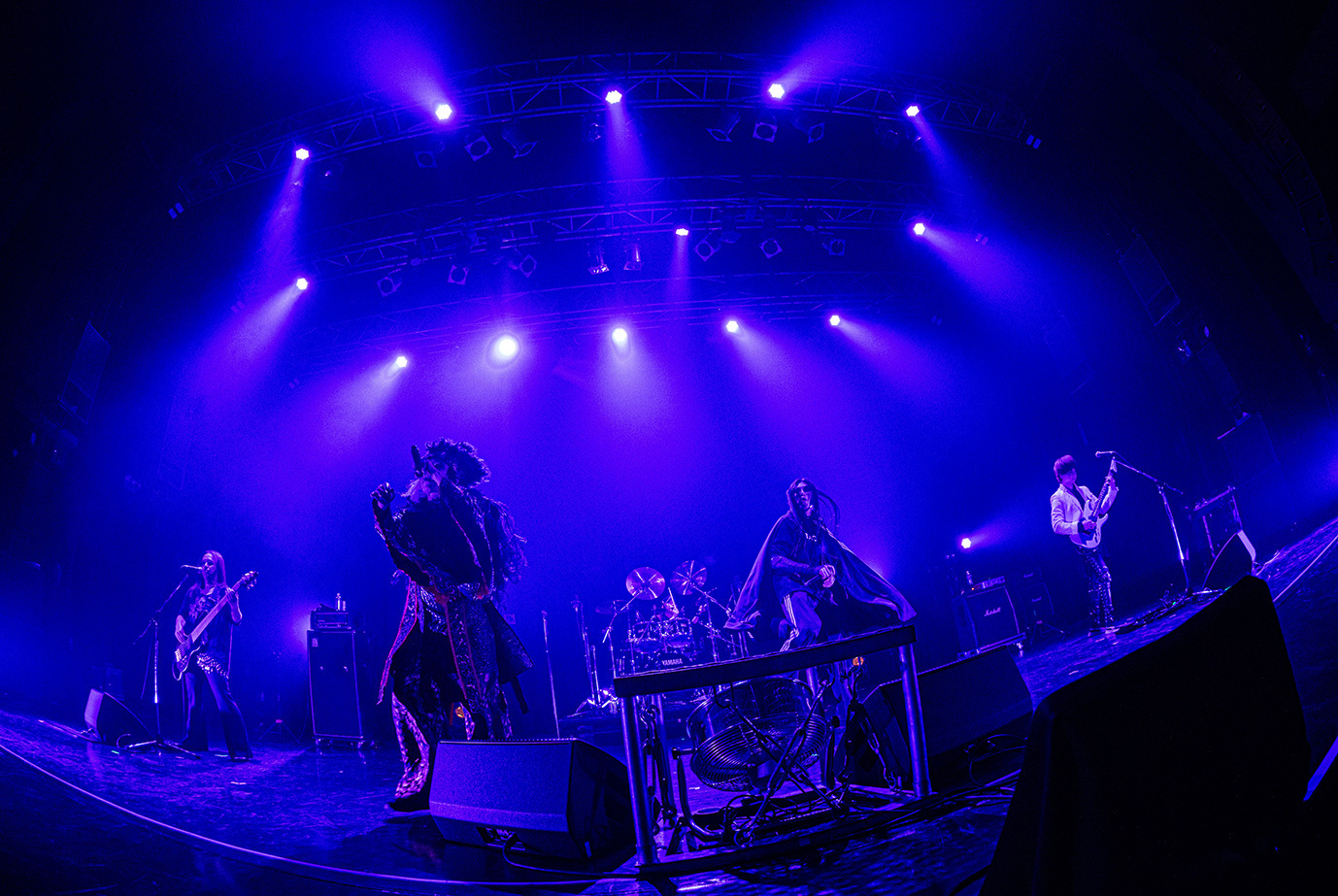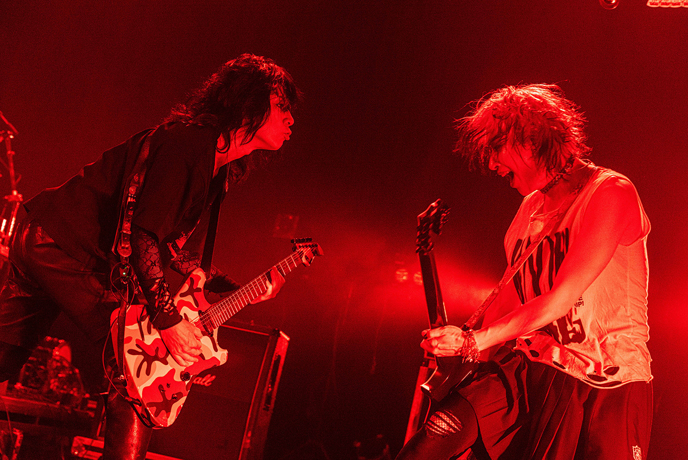 LM.Cに次いでステージに立ったGargoyleは「ハレルヤ」を皮切りに、「完全な毒を要求する」や「影王」といった高速のメタル・チューンを相次いで披露。絢爛な衣装に身を包み男気に溢れた歌声を聴かせるKIBAが放つ鮮烈な存在感と重厚に突き進むハードなサウンドが生む説得力は絶大で、結成から39年、ライブ本数1500本あまりという歴史の重さを感じずにいられない。ライブを締め括った「DESTROY」はHAKUEIを加えた編成で披露され、HAKUEIがただ単に歌うだけではなく世界観を深める役割も務めたことからは、彼のGargoyleに対する深いリスペクトが感じられた。そして、Gargoyleはそれにふさわしいバンドと言える。長年に亘って活動していながらレイドバックすることなく、現代のロックにふさわしいスピード感を纏ったヘヴィメタルで勝負する彼らの魅力を再確認できたステージだった。