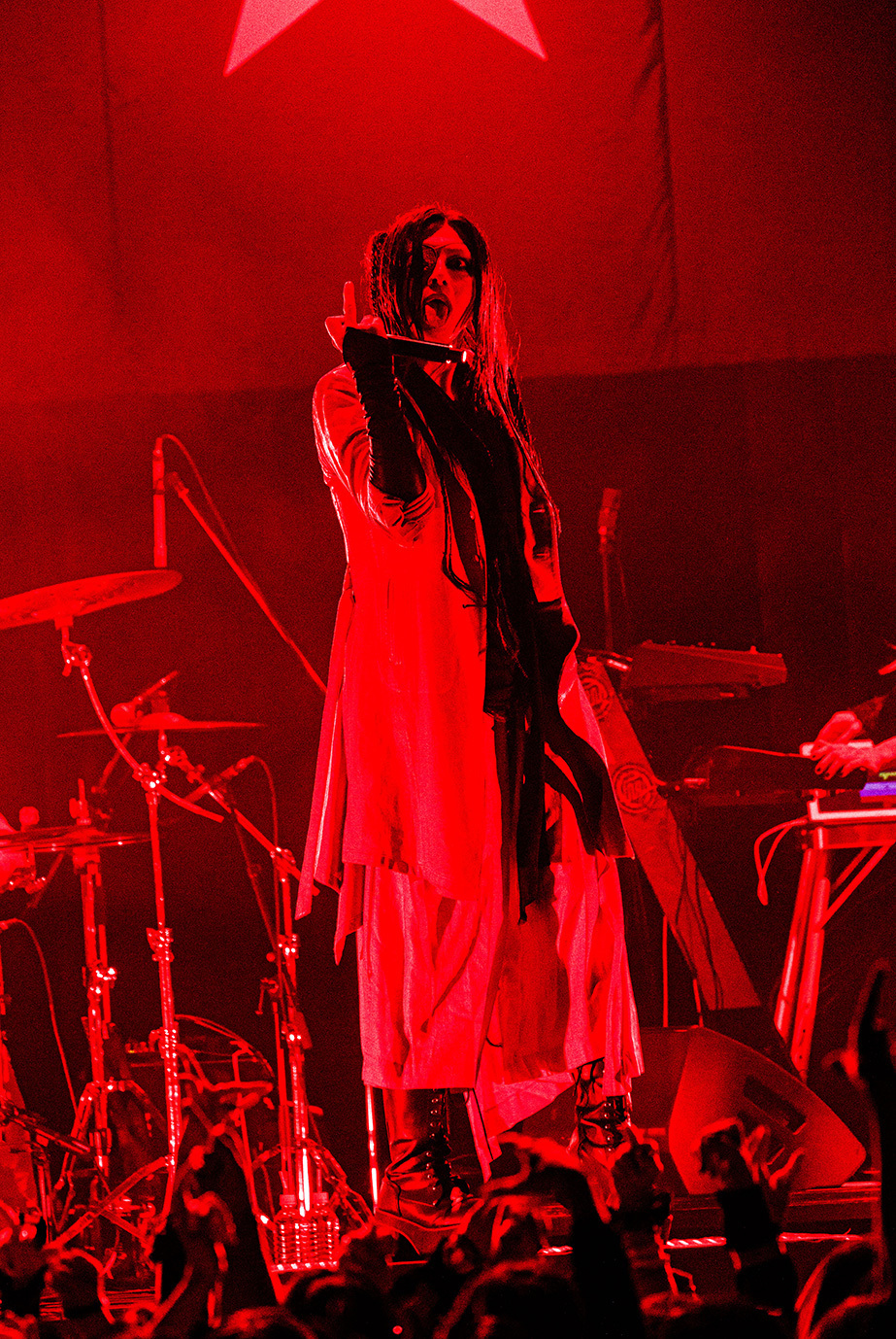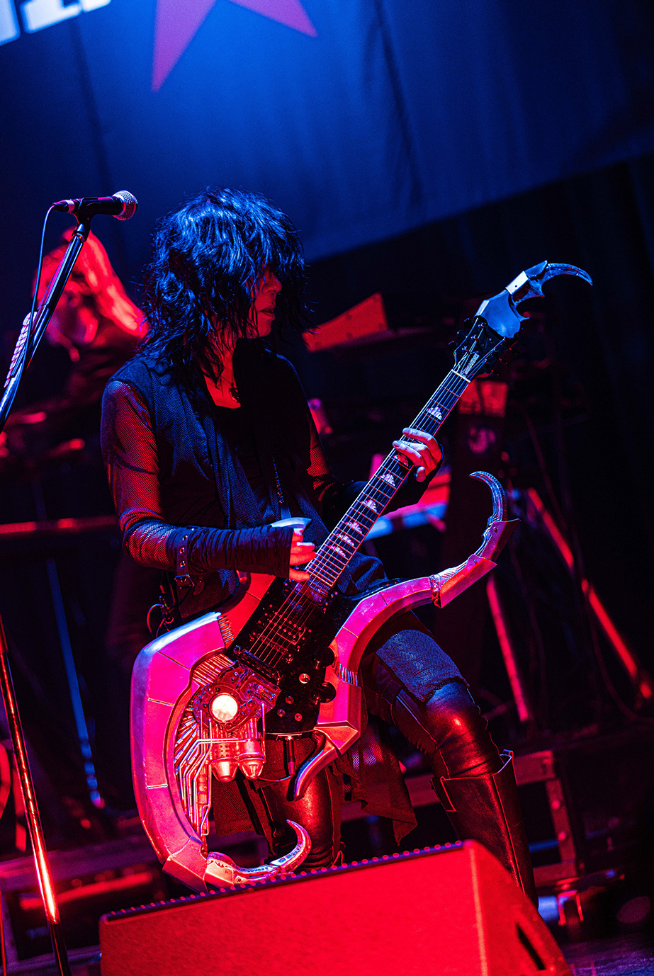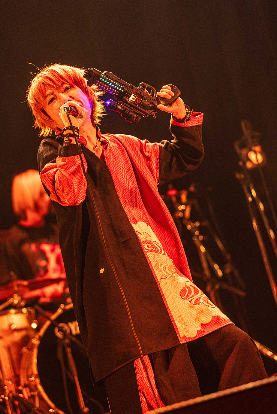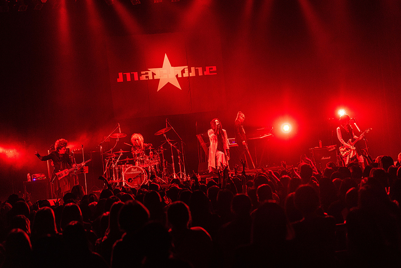 「こんばんは、machineというバンドです。今日は平日に拘わらず、こんなに沢山来てくれて、ありがとうございます」とHAKUEIが挨拶。今年8月に東名阪ツアーを行うことを告げた後、「俺達の生き様を見てください。命尽き果てるまでmachineをやろうと思っています」という熱い言葉に続けて「Ash 2025」や「猿の惑星 2025」「010(ZERO-ONE-ZERO) 2025」などが演奏された。デジタル・テイストとパンクが香るハードネスを絶妙にバランスさせたmachineのラウドなサウンドは独自の魅力に満ちているし、妖艶なHAKUEIとクールなKiyoshi、ワイルドなseek(b)、常に全身全霊のドラミングを展開するCHARGEEEEEE..,、ミステリアスなCOLA(Mp)という個性的なメンバーがひとつになって生まれる強固なケミストリーも実にいい。“machineはまさに唯一無二の存在だな”と、あらためて感じずにいられなかった。