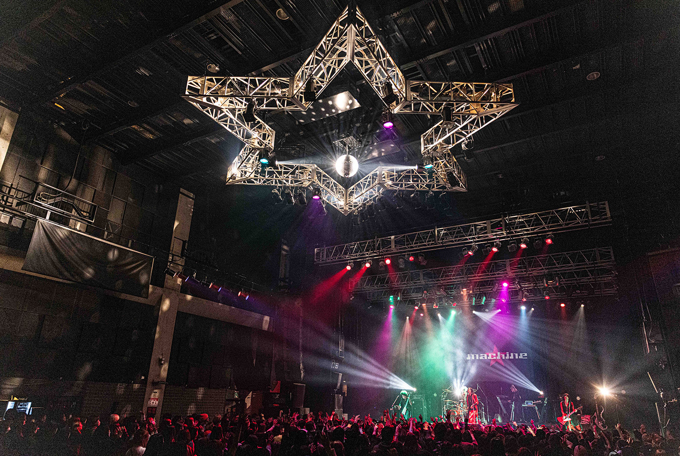 場内が終始いい空気感に包まれてイベントは進んでいき、いよいよmachineのライブが始まった。オーディエンスが発する大歓声と熱い拍手を浴びてステージに立った彼らは荒々しい「Hero 2025」やファットにロールするサウンドを纏った「Baby Blood 2025」、退廃的な「invader 2025」などを続けてプレイ。ライブが始まった瞬間からアクセル全開で突き進む彼らの迫力は圧倒的で、場内のボルテージがさらに高まったことが如実に感じられた。