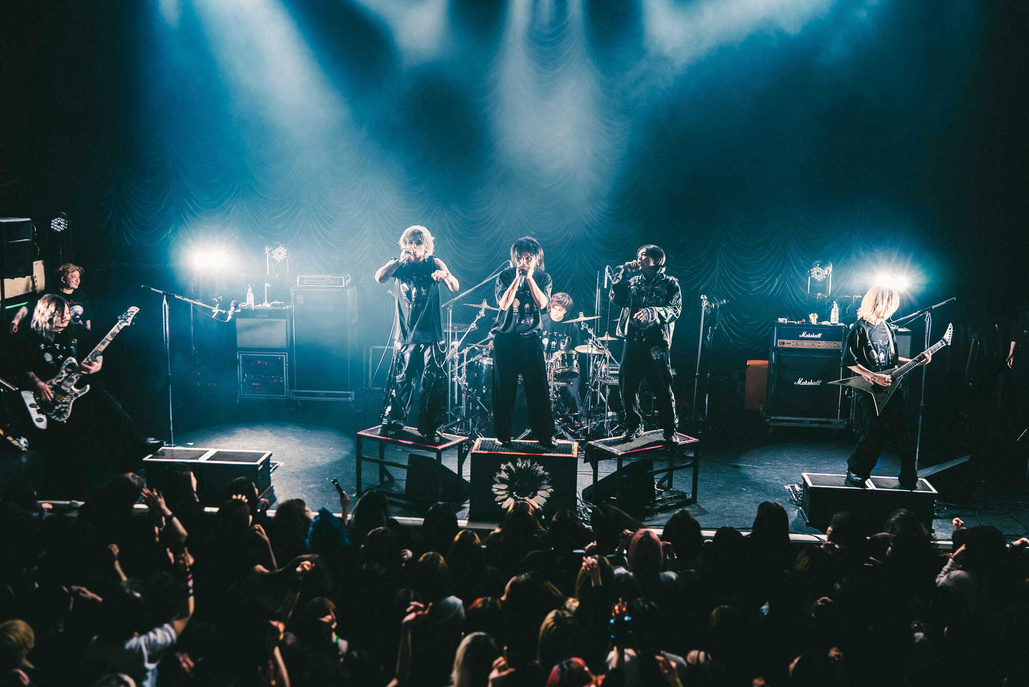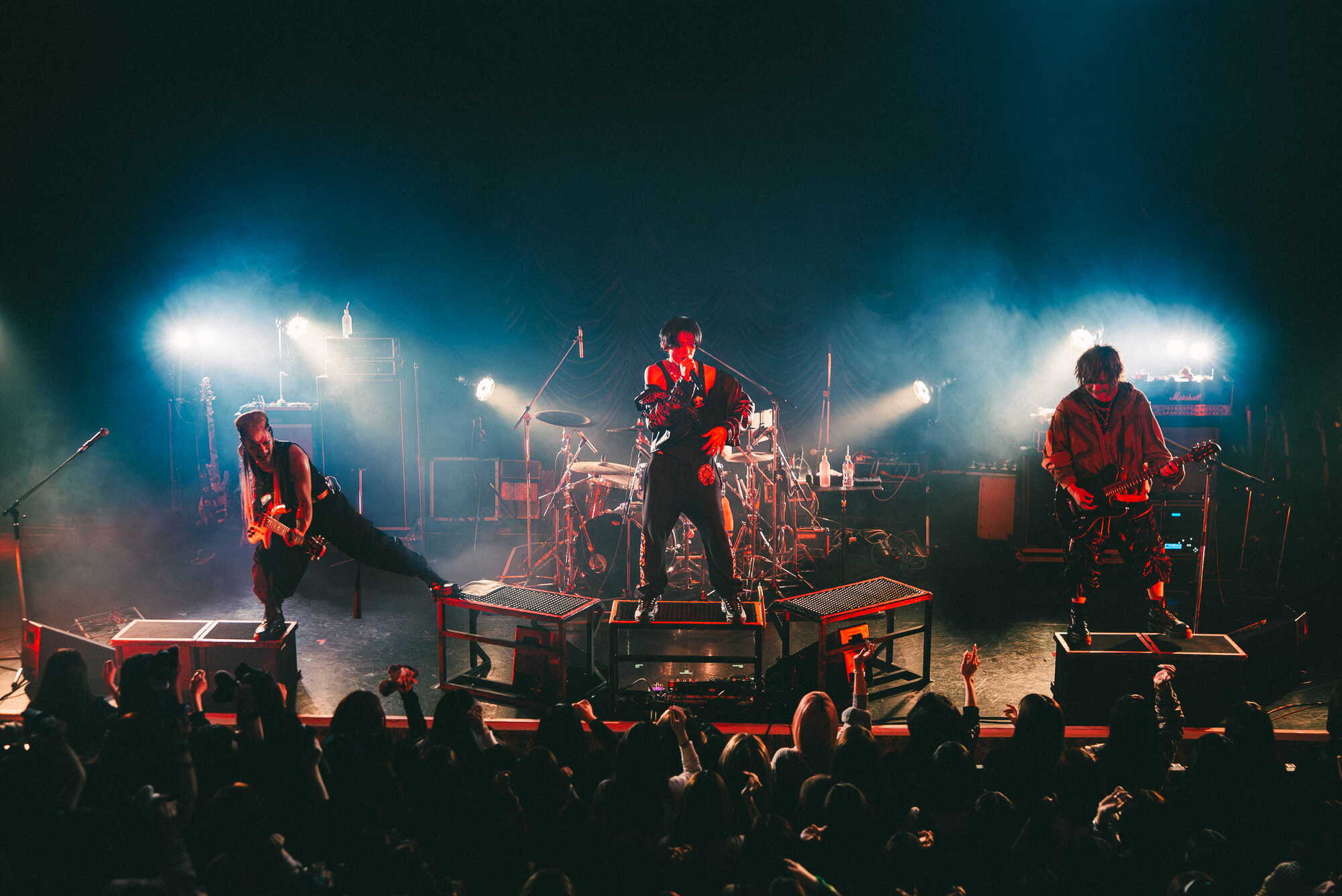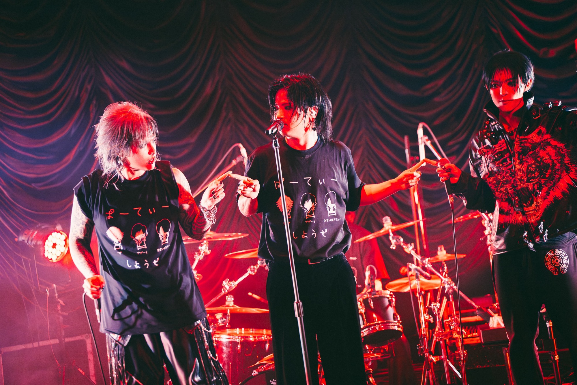 ほどなくしてかかったアンコールでは、咲、昴とそれぞれ1回ずつ、さらにオーラスでは3人のフロントマンが集結して「「殺意」」を合計3度に渡って披露。