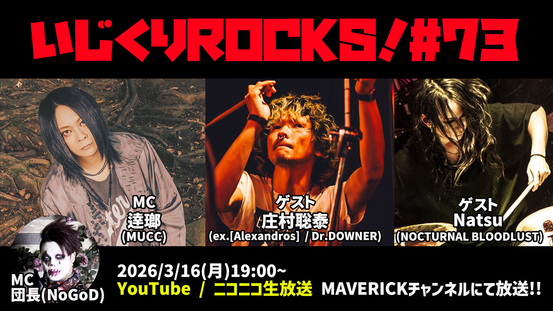 MUCCの逹瑯とNoGoDの団長がMCを務めるMAVERICK DC GROUP公式番組「音楽情報ライヴ いじくりROCKS!」73回目の放送が、