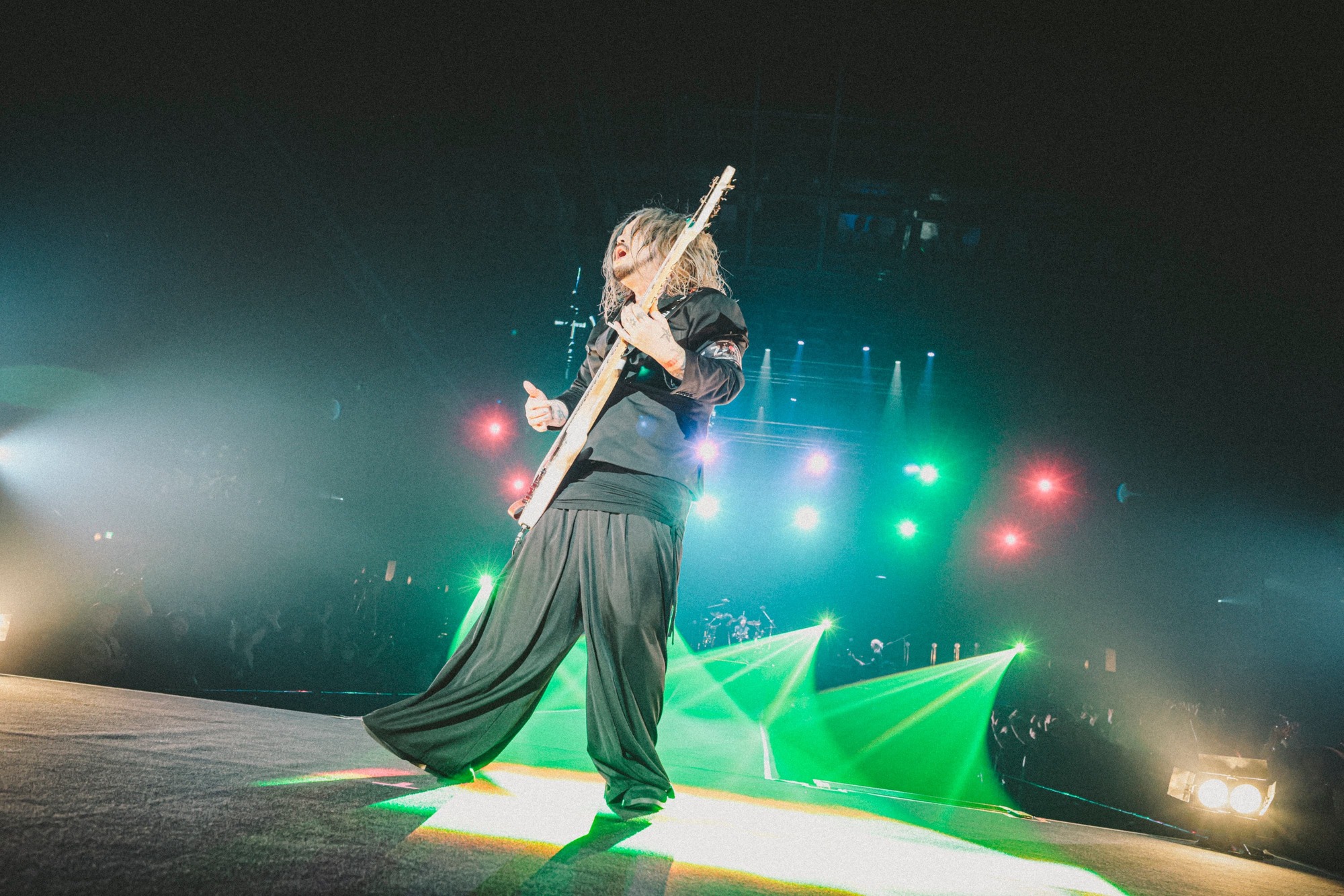 そこに千秋(Vo)の気高くも憂いを帯びた歌声が重なり、DEZERTの音楽が幕張メッセに響き渡る。その神聖なる音と、4人の凛とした佇まいは、ロックバンドの美しさそのものを映し出していた。