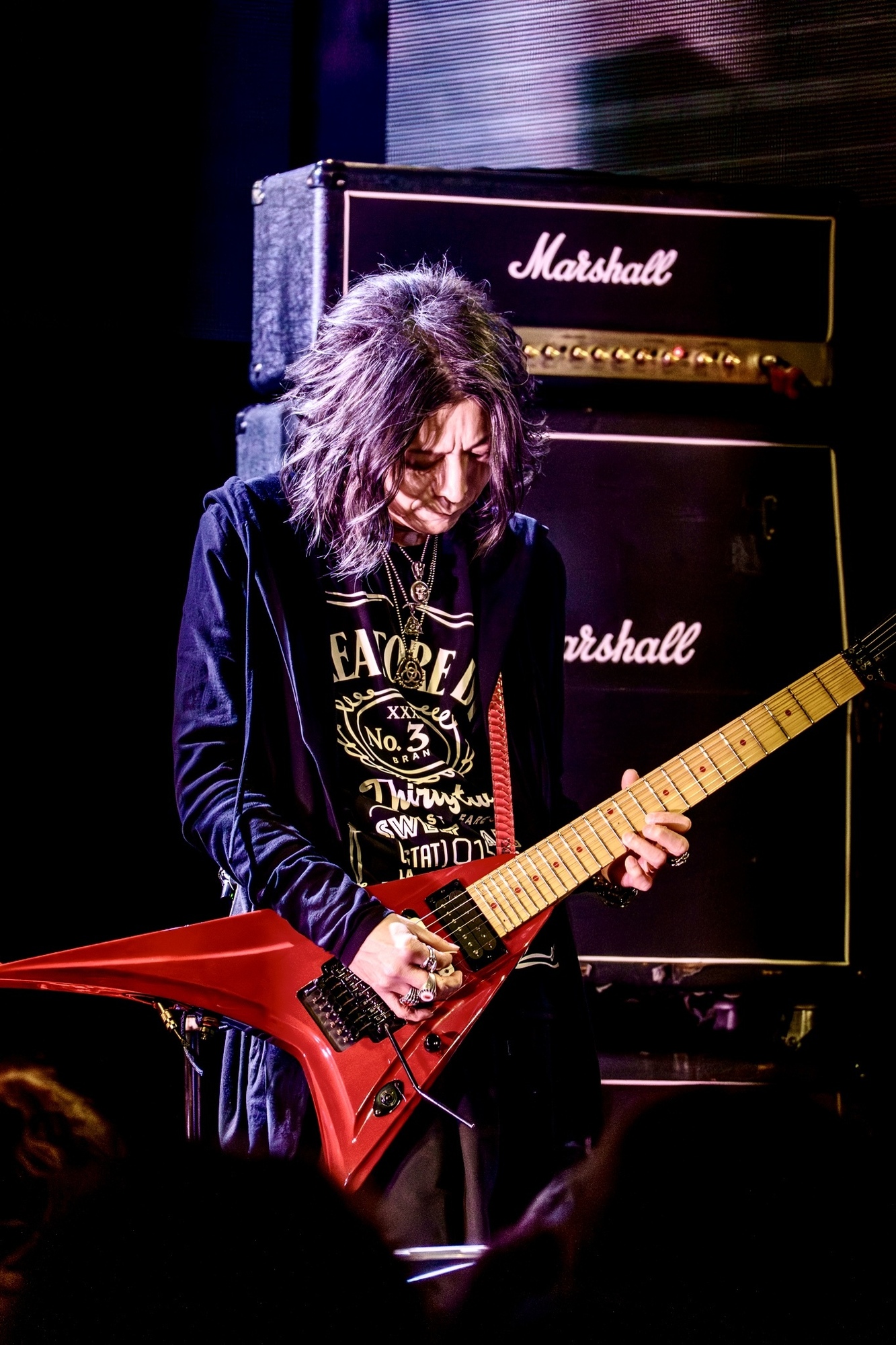 アンコールでは“JOEのルーツになっている曲を演奏する”というテーマのもとにBLIZARDの「The Second Diamond」とSEX MACHINGUNSの「みかんのうた」を披露。翳りを帯びたミディアム・チューンの「The Second Diamond」とアグレッシブかつキャッチーな「みかんのうた」というコントラストを効かせた選曲は絶妙だったし、朝井’SCOTTIE’泰生とPANTHERが織り成す華麗なギター・ハーモニーやテクニカルなソロ・バトルなども聴き応えがあって楽しめた。