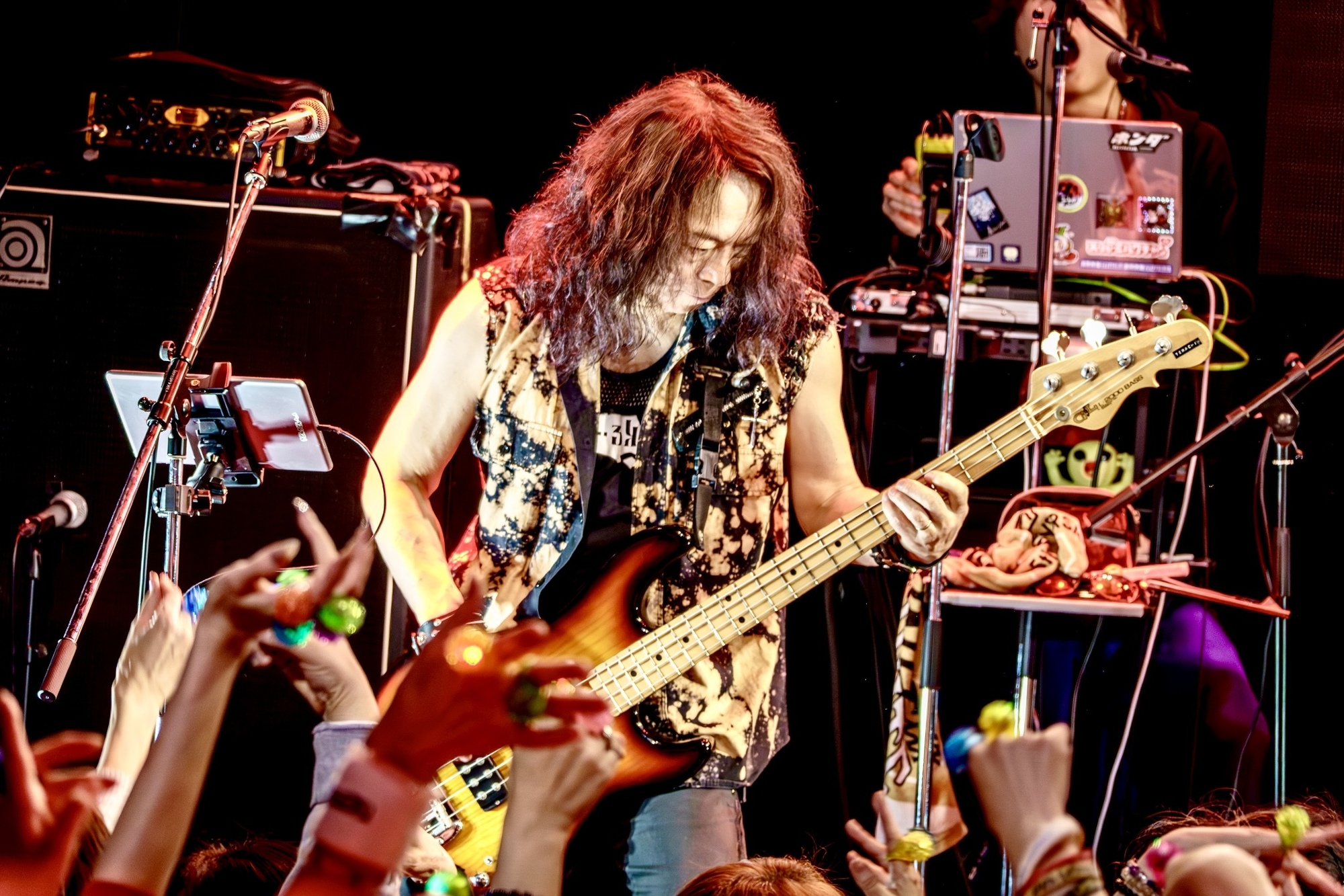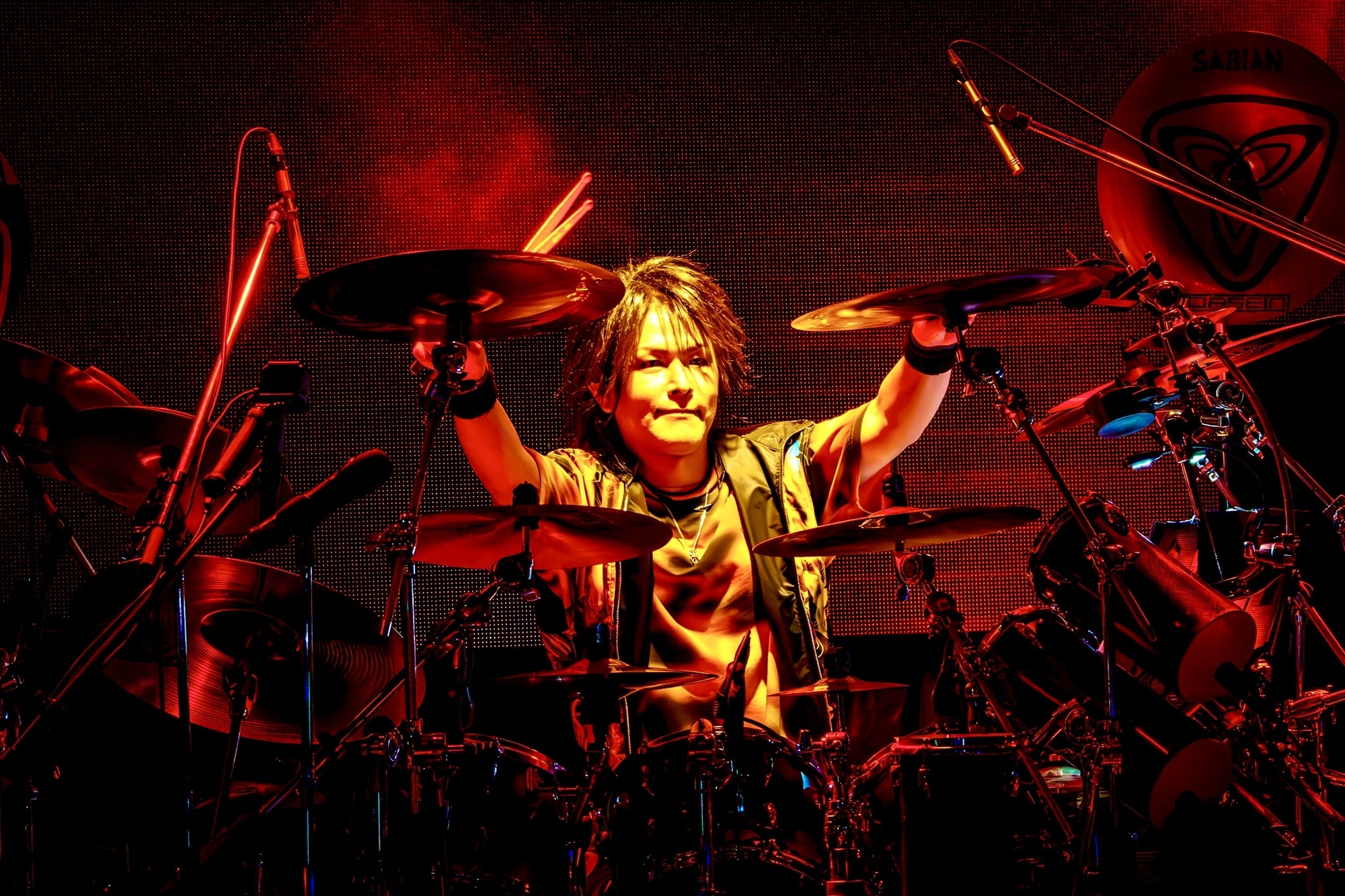 その後は本日2回目となるJOEのドラム・ソロを経てPANTHER(g/ex. SEX MACHINEGUNS、ELLEGUNS、CYCLE)が姿を現し、インストゥルメンタルの「狼煙」をプレイ。プログレッシブ・ロックに通じる知的さや緊迫感などを湛えたサウンドでオーディエンスを魅了した後、RickyとJOE、山田、寺沢、PANTHERという編成で激しさとラグジュアリーな味わいを巧みに融合させた「Yの黙示録」やPANTHERと寺沢のソロ・バトルを導入に配した「今に勝る時はナシ 今に敗けるよりはマシ」などが届けられた。いつものDASIENとは一味異なる、よりメタル・テイストの強いサウンドは魅力的だし、怒涛の爆音の中から“ズバッ!”と抜けてくるRickyのボーカルも見事。そして、圧倒的なハードネスを発していながら、DASIENならではの洗練感が失われなかったのはさすがの一言に尽きる。