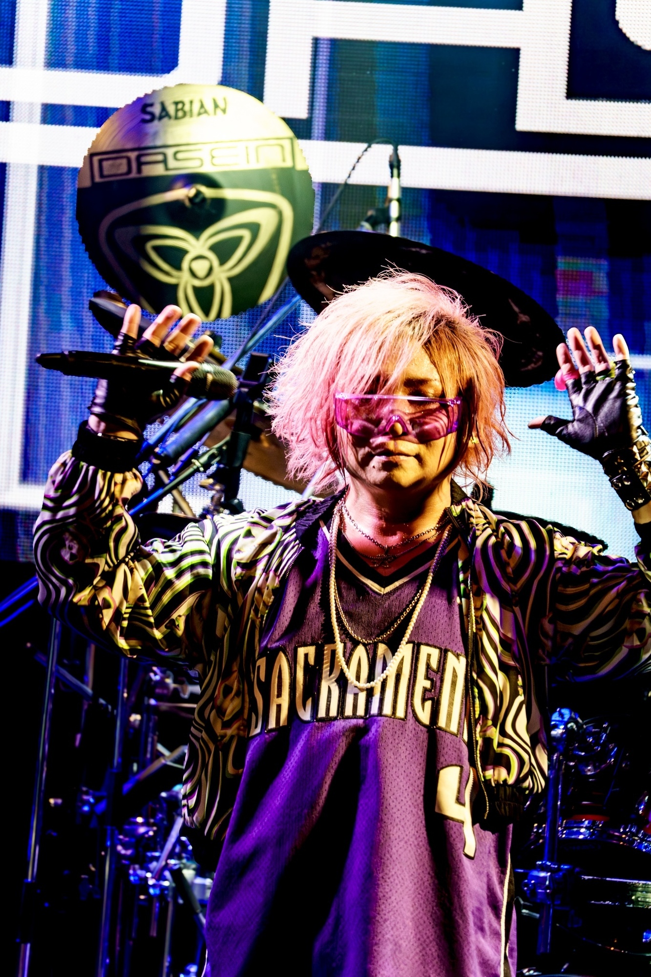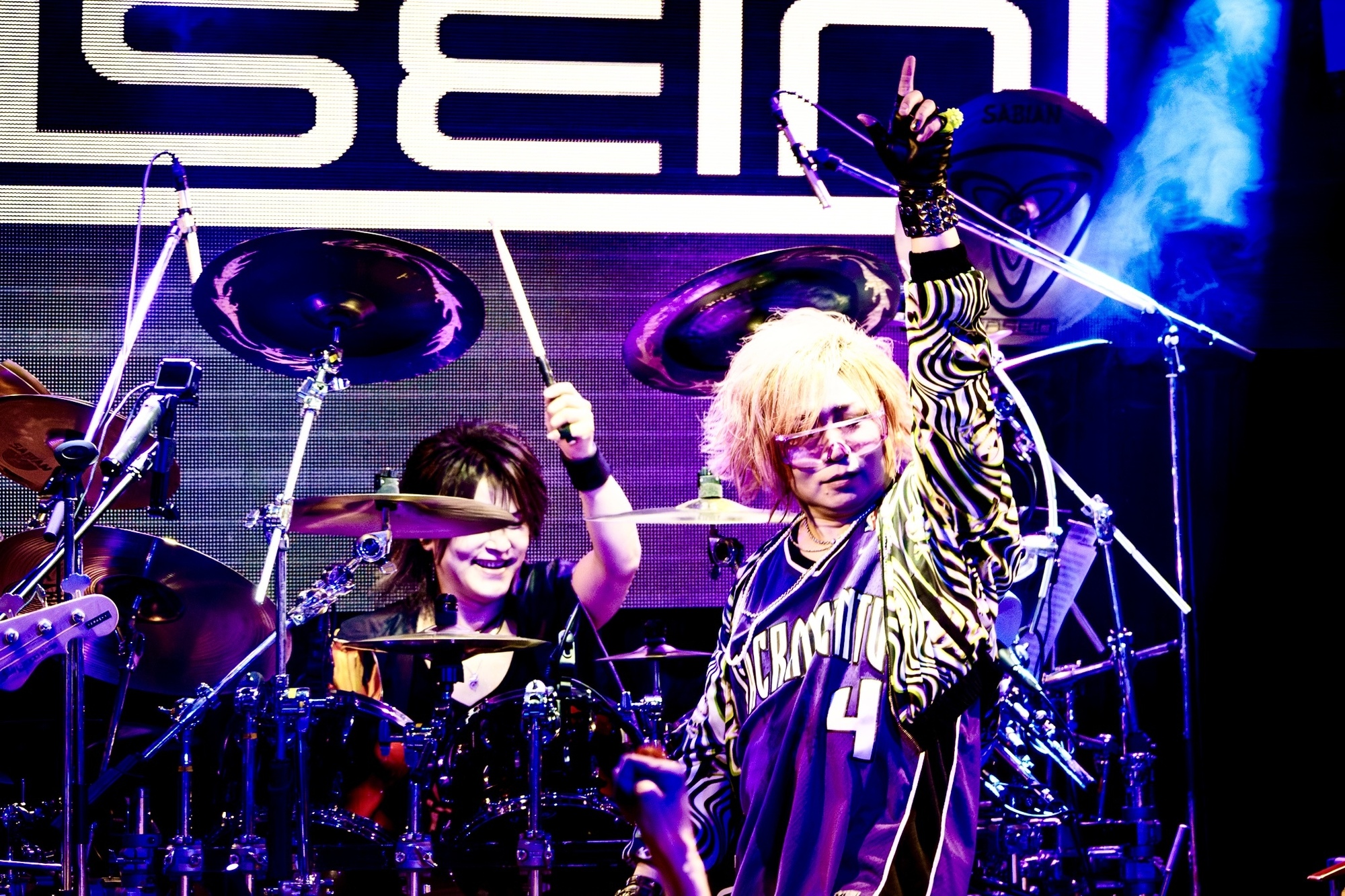 <JOE BIRTHDAY LIVE EVENT 「WELCOME TO THE FACE 2026」~誕JOE日で気分は上々だジョー⤴︎~>はJOEのドラム・ソロで幕を開け、インストゥルメンタルの「旅愁」に移る流れから始まった。和太鼓を思わせるプレイから入り、近未来感を纏ったシーケンス(打ち込み)とパーカッシブなドラムを融合させたセクションやメタリックに疾走するパターンなど、JOEは幅広いアプローチを披露。ポテンシャルの高さが遺憾なく発揮された彼のドラミングは本当に魅力的で、“ドラム・ソロ始まり”というイレギュラーなオープニングでいながら出鼻を挫かれたような感覚は一切なく、強く惹き込まれずにいられなかった。