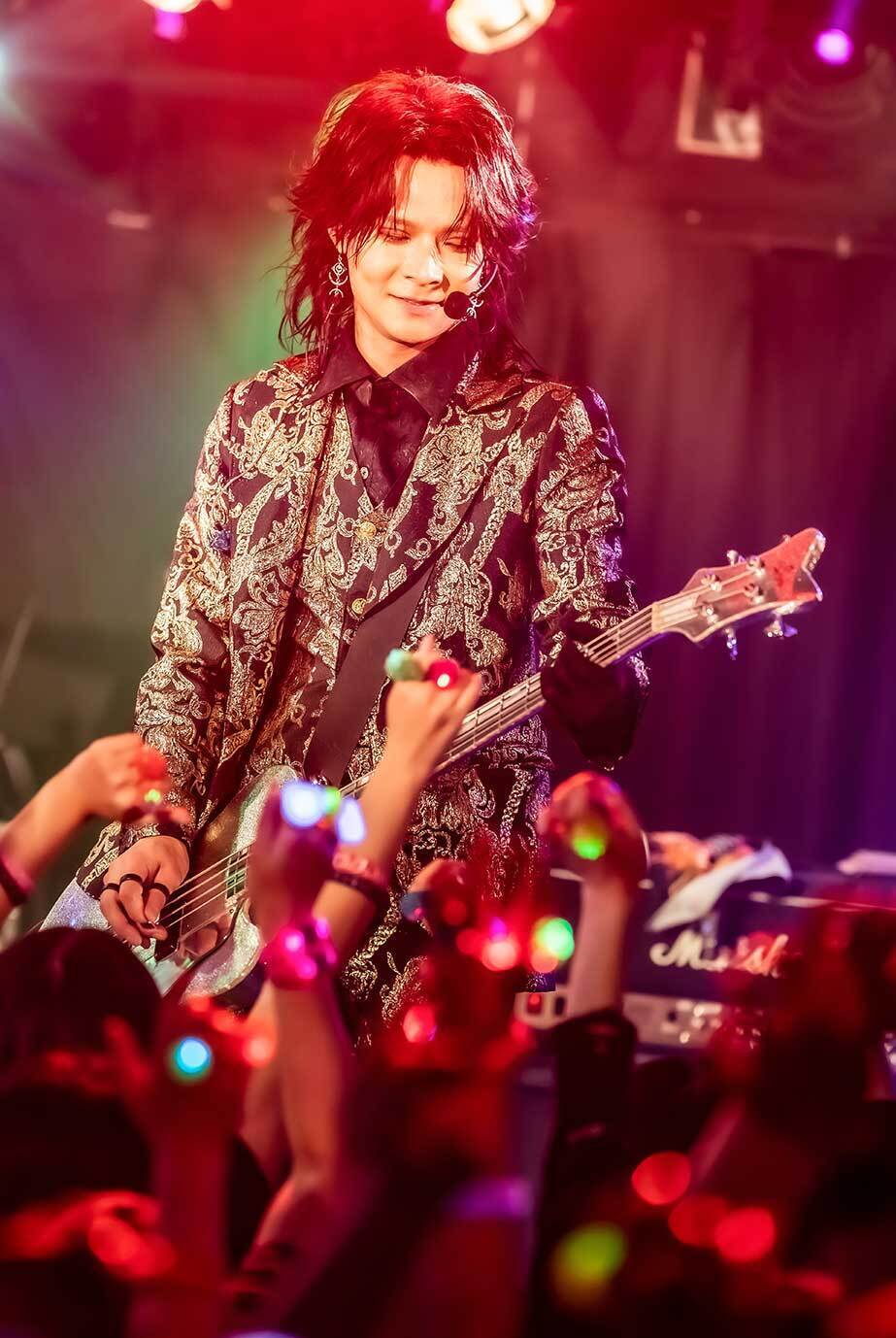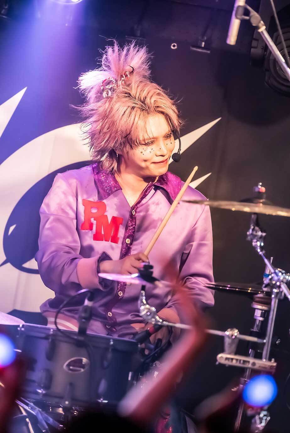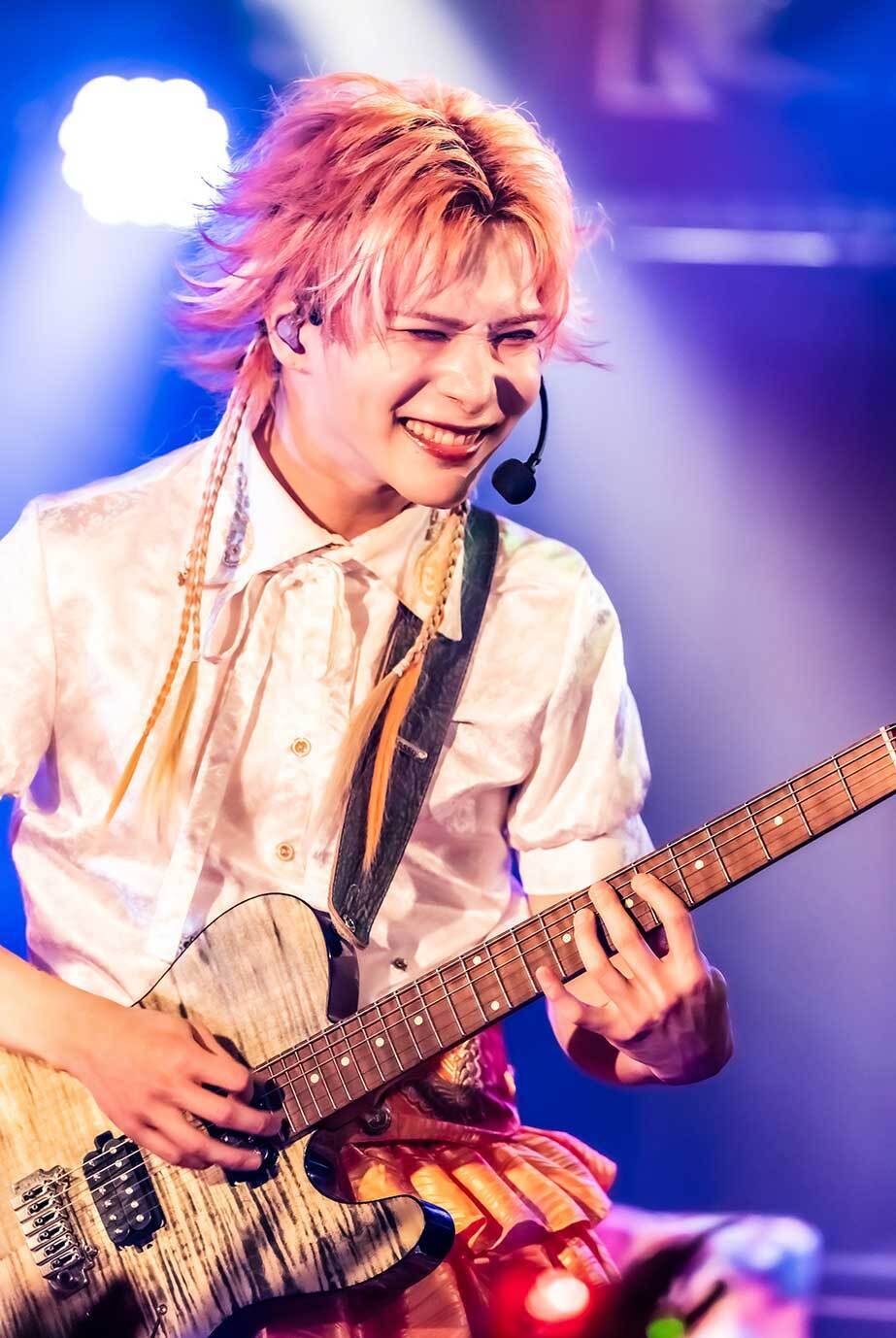 “パラパラ”からのお馴染みのオープニング中、るいまるは「パンパンのソールド公演だ! 気分はどうですか、Dreamer⁉︎(※ファンの呼称) 全員で行くぞ!」と扇動し、『最強伝説』を投下。会場のボルテージは瞬時に跳ね上がり、勢いに拍車をかけるようにパーミー(Dr)がツーバスを叩き込む。ギラつく空間でパリピマインドで戦っていく意欲を炸裂させた『ダンシングソルジャー』や、ハードな一面を見せた『FAKE OUT』。続いて、幸村(Gt)のギターがゴシックな旋律をなぞる『メラメラ☆オキニ』と、強靭なロックサウンドの威力を存分に発揮。冒頭から多彩な楽曲を詰め込んで、“個”を確立したメンバーが実直にプレイする姿に、バンドとしての進化を感じずにはいられない。