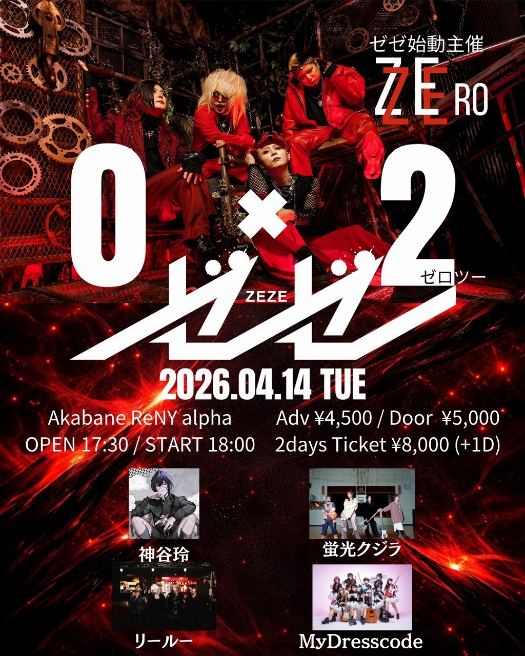 ・ゼゼ始動主催「ゼロツー」赤羽ReNY alpha公演のチケットはこちら。