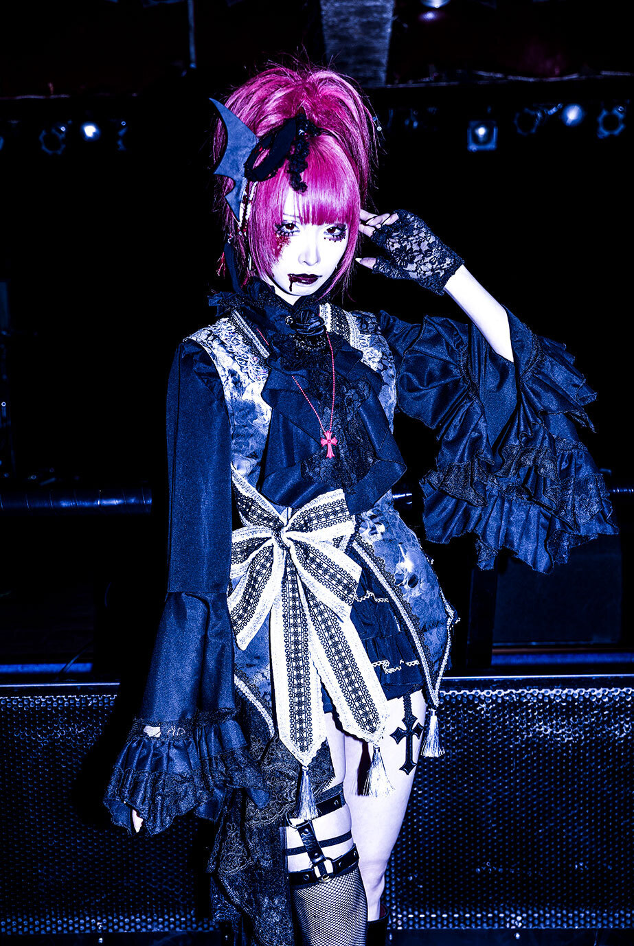 熱狂する観客たちの頭上へ重厚な音の鉄槌を振り下ろすように叩きつけた『lament』では、4人とも雄々しき声を刃のように研ぎ澄ませ、気持ちを奮い立て、観客たち一人ひとりの胸へと突きつけてきた。サビで4人が荒ぶる感情を一つに雄々しく歌う声が、魂を痛く揺さぶる。今はただ、甘美なリズムとノイズのような攻撃的な音のウネリに身を投じて暴れ狂っていたい。だから、狂った司祭と化した彼女たちが、『ユダの接吻』を通して全身全霊で迫ったヒリヒリとした痛い歌の口づけさえ、全力で受け止めていたかった。彼女たちの声の洗礼を全身に浴びながら、熱狂とカオスな音の渦の中に溺れていたかった。