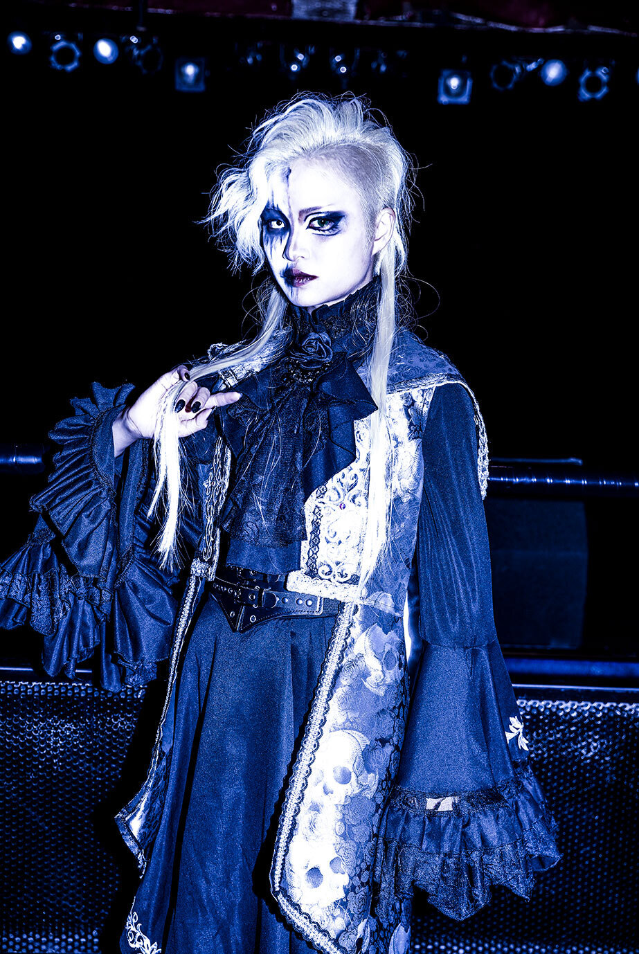 重厚で激しいシンフォニックな音色が響きだした。その上でメンバーらが叫ぶのを合図に、楽曲は一気に荒れ狂いだす。maleficiumのライブに黒い熱狂の景色を作りあげる『Distopia』だ。美しくもエモい歌声の調べに心を踊らせながらも、轟音シンフォニックでゴシックな音の洗礼に触れ、身体を大きく折り畳み、拳を振り上げずにはいられなかった。まるで黒い洗礼を受けた人たちを漆黒のユートピアへと導くように、彼女たちは世紀末をつかさどる破壊の女神となり、甘美な歌声の調べで観客たちの理性の螺子をどんどん歪ませ、狂わせていく。さらに美しくも狂熱の世界へと連れ出すように、maleficiumは『月は無慈悲な夜の女王』を歌いだした。CHIHO FUKUDAと夜縋らるむの絡み合う歌声に導かれ、アルカード・アリスとセシルの煽りにひれ伏すように、ノイズのような黒い轟音の中、美しくも甘美に響く彼女たちの歌声に、心が嬉しく奮えていた。だから、彼女たちが誘うままに「Oi!Oi!」と声を荒らげ、魂を奮い立てるように拳を振り上げ、叫び続けていた。4人の感情と観客たちの気持ちが一つに重なり、この場を黒い熱狂の景色に染めあげていく。そのうえで…。