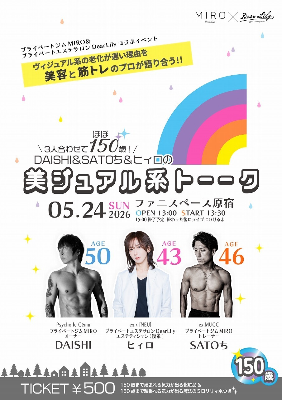永遠の美を手にしたDAISHI&SATOち&ヒィロの3人が出演。「ヴィジュアル系の老化が遅い理由を美容と筋トレのプロが語り合う」トークショーの開催が決定!!!