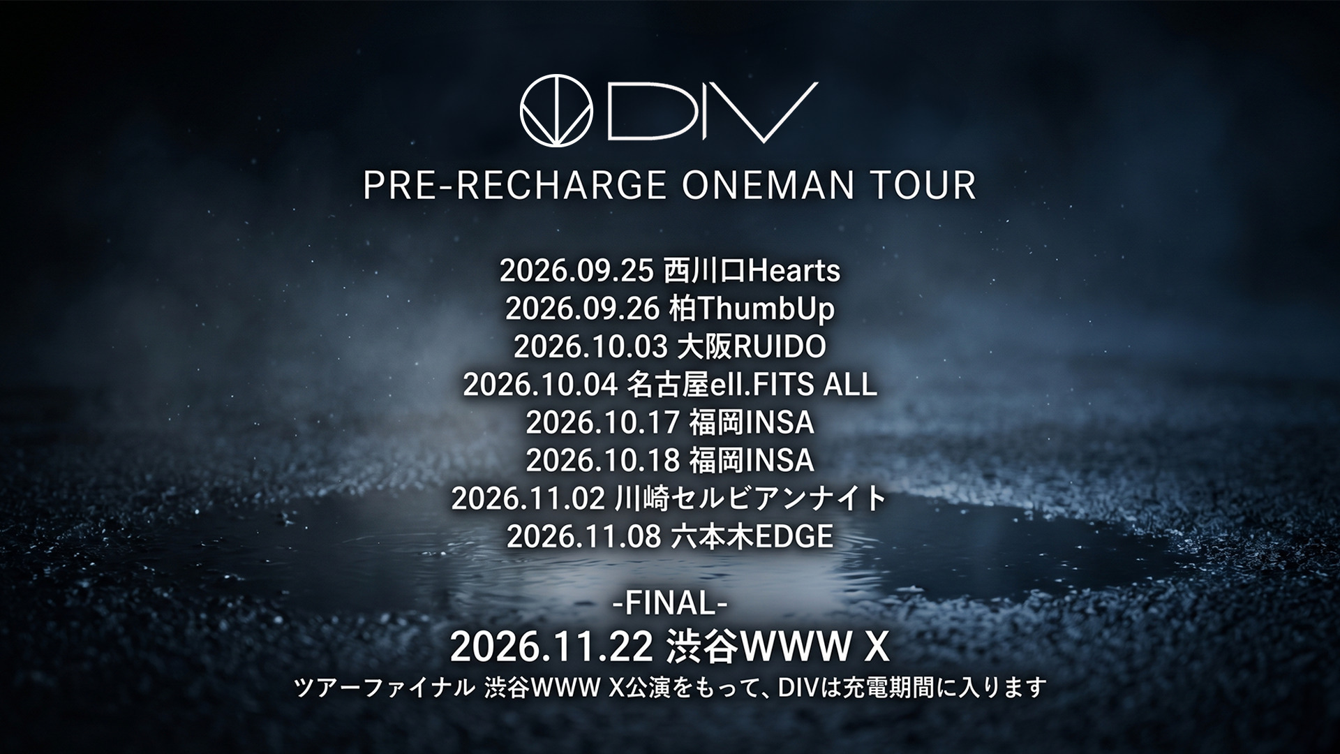 充電に先立ち、9月25日より全国ワンマンツアー「DIV PRE-RECHARGE ONEMAN TOUR」を開催する事が決定した。