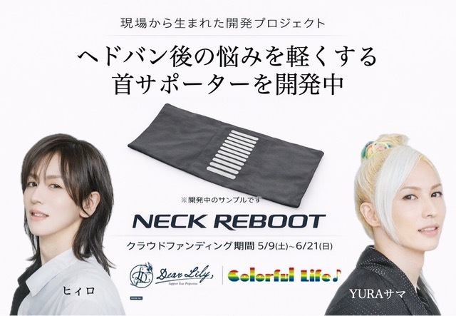 商品開発にはヒィロが代表を務める化粧品メーカーのDearLilyが全面的に協力をしており、遠赤外線に磁気を練り込んだ特殊生地をベースに、ヘドバンでダメージを受ける部分にはリカバリー生地まで使っている「ヘドバンの後のつらい悩みに特化したネックサポーター」だ。しかも、遠征などに持ち運びやすいことも考えられており、軽量かつ洗った後の速乾性もあるとのこと。ライブの後に「NECK REBOOT」を首に巻くだけで、自然に辛さを解放に導いてくれる。なぜこの商品を開発したのかの理由を、2人はこう説明してくれた。