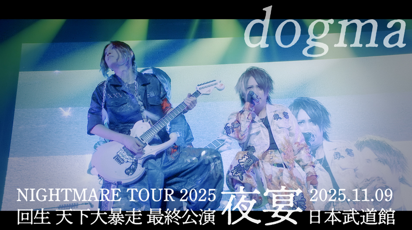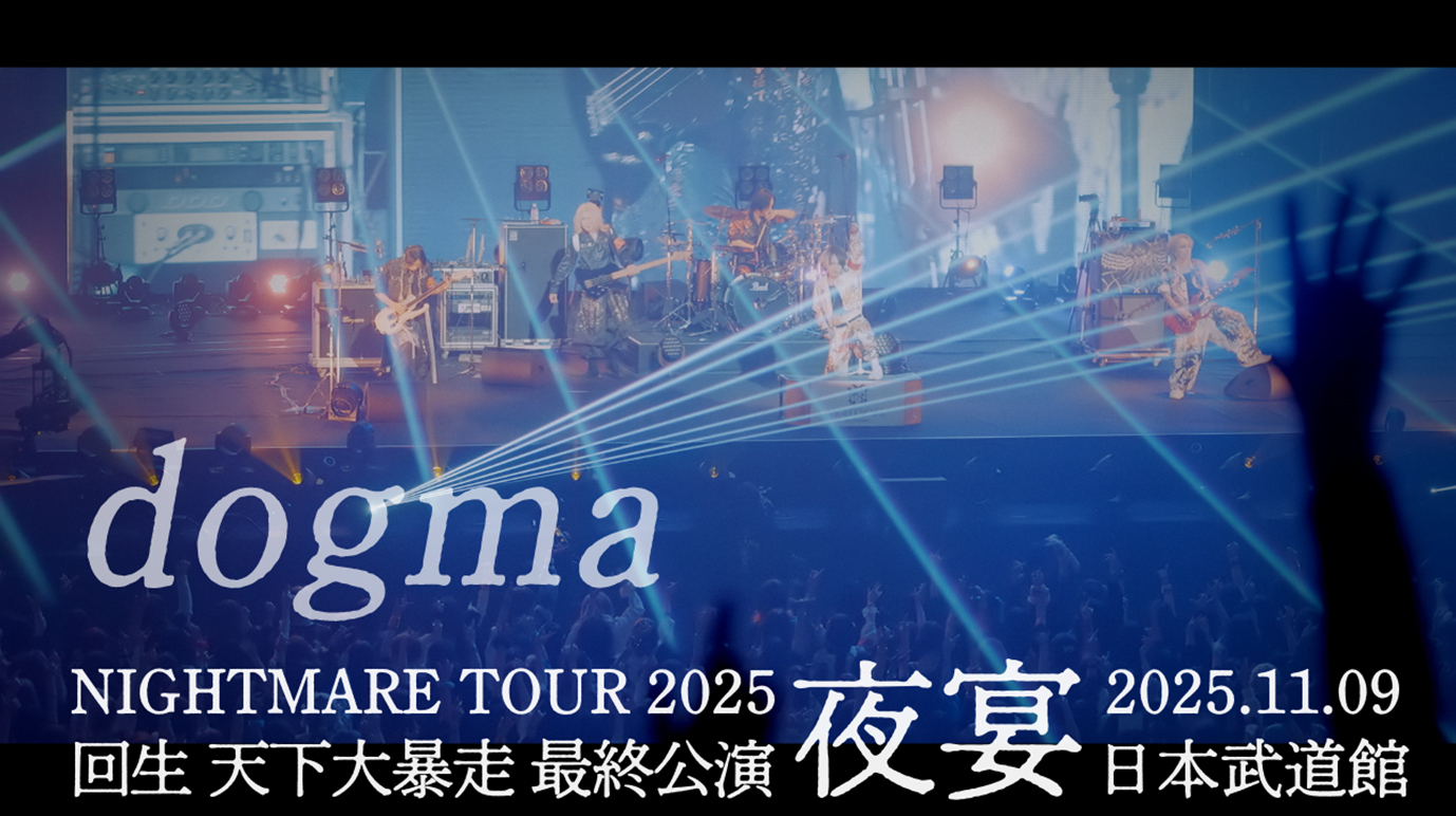 NIGHTMAREが、4月22日リリースの映像商品「NIGHTMARE TOUR 2025 回生 天下大暴走 最終公演 夜宴 2025.11.09 日本武道館」から「dogma」「Jubilee」のライブ映像をYouTubeに公開した。