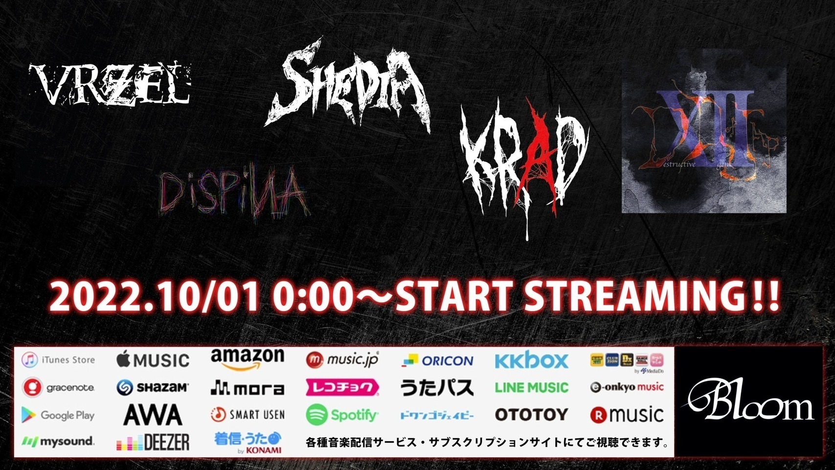 VRZEL,SHEDIA,DiSPiИA,KRADなどBloom歴代所属バンドの音源が一挙配信中