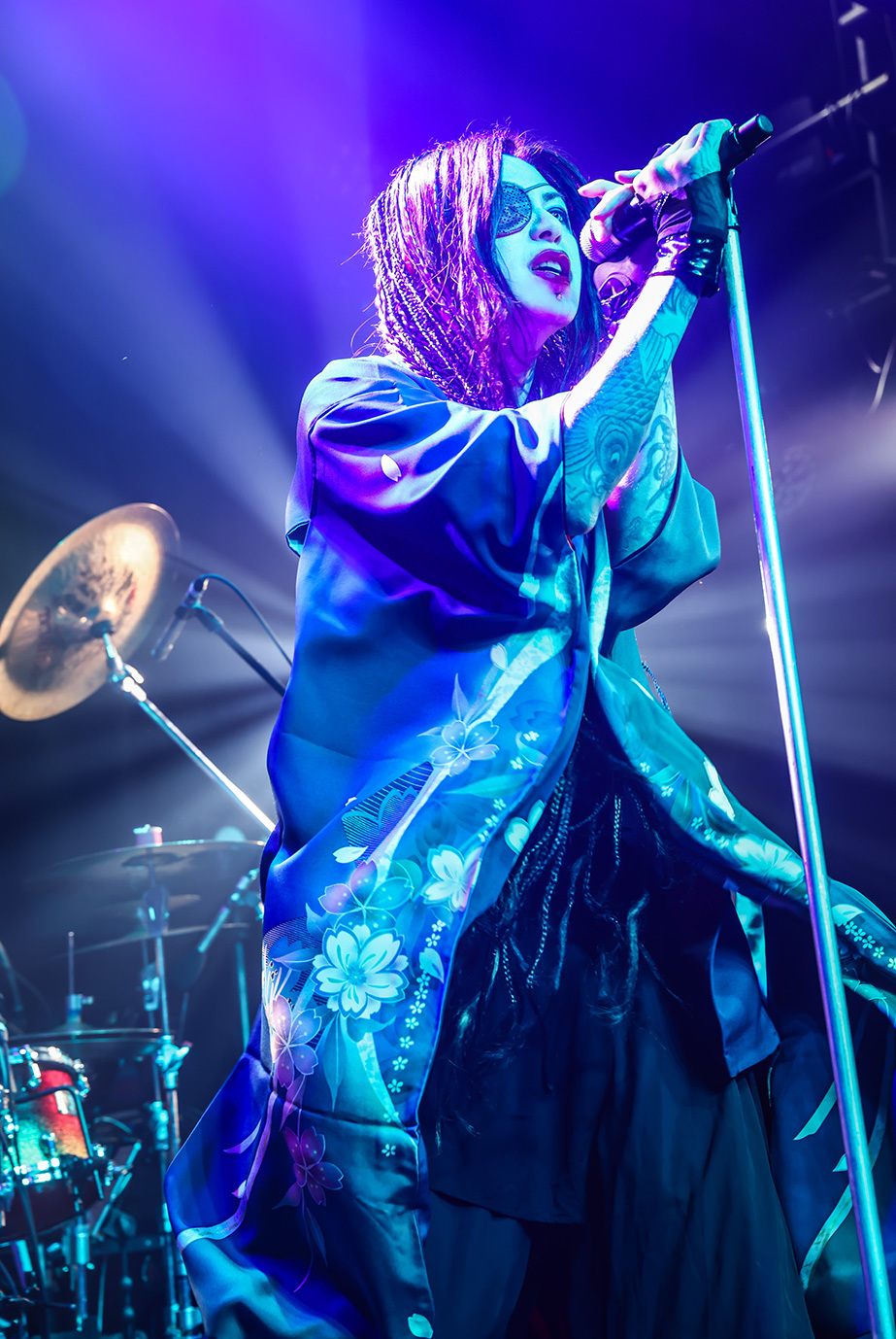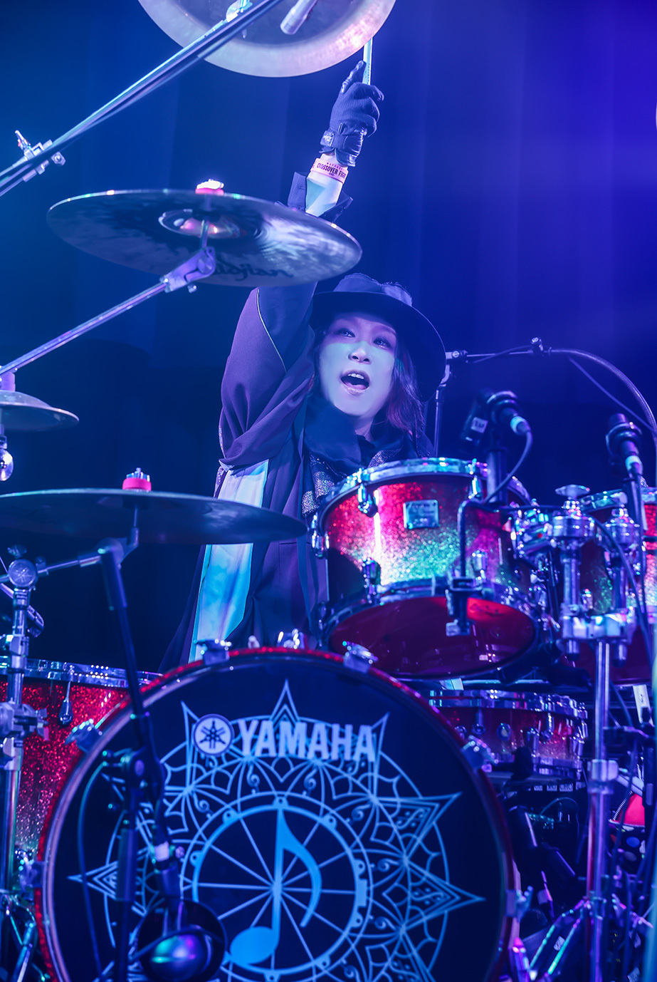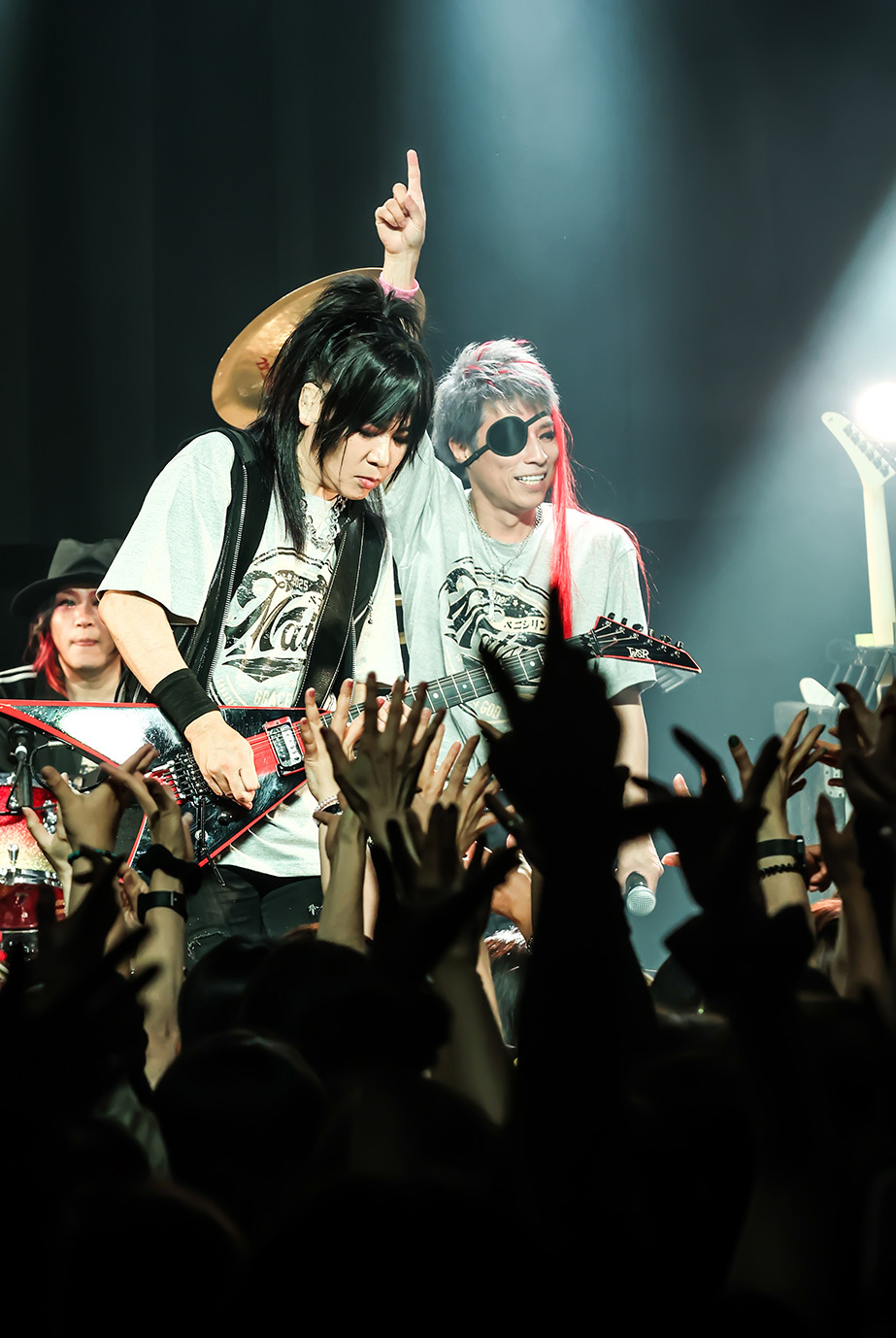 とはいえ、いくら和装だとは言ってもPENICILLINのパフォーマンスまでもが“おしとやか”になることはあるわけもなく。ヘヴィで攻撃的な最新シングル曲「One Thousand and One Nights」や、ギタリスト・千聖のドラマティックなギターソロが映えた「Japanese Industrial Students」、ドラマー・O-JIROの叩き出すリズムが場内を揺らすことになった「99番目の夜」、HAKUEIが激烈でアグレッシヴなヴォーカリゼイションを決めてくれた「FOR BEAUTIFUL MAD HUMAN LIFE」と、良い意味での通常営業なPENICILLINらしいライヴが展開されていくことになったのだ。