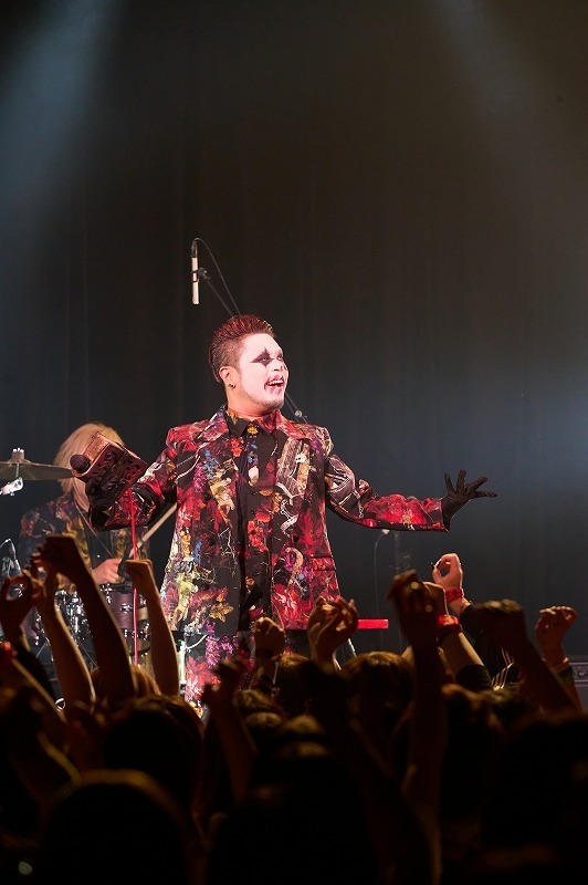 「まだいけるよな、蹂躙しようぜ」。『If possible』が始まったとたん、場内にいる人たちが右へ左へと一斉に横モッシュを始めた。気持ちが熱く高ぶるのは当たり前、もっともっと感情を壊してしまいなよとけしかけながらも、歌心をしっかりと持ってNoGoDは攻めてきた。間奏では2本のギターが高速でソロをかけあい、さらに音をハモらせる場面も登場。ヘヴィなグルーヴを抱いて爆走する演奏と、熱狂へと先導する団長の歌にあわせて、場内中の人たちが左へ右へと飛び跳ね、駆け続けていた姿が、瞼に強烈に焼きついた。