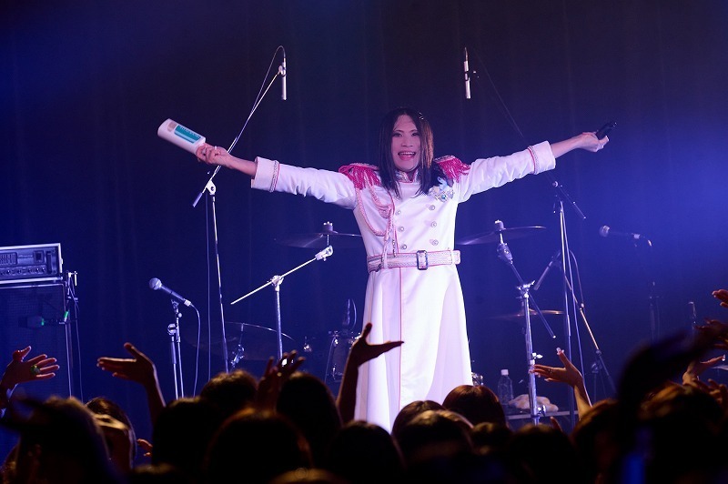 最後にJin-Machineは、20年活動を続けてきた自信と揺るがぬ思いを込めて『さよならアキラメロン』を熱唱。荒々しい演奏に乗せてfeaturing16が張り上げた声で観客たちを煽れば、フロアからも多くの拳が突き上がる。featuring16が声を荒らげて熱く煽るたびに、フロアのあちこちで観客たちの飛び跳ねる景色が誕生。Jin-Machineは、あきらめないみずからの強い意志をぶつけた『さよならアキラメロン』を通して、この空間を、拳を上げて飛び跳ねる人たちが熱狂する景色に染めあげていった。コミカルにみせてじつはシニカルな曲の数々を通して楽しさを与えつつ、最後に、「何度倒れても立ち上がってやる」と気持ちを熱くする楽曲を持ってくるところもJin-Machineらしい。