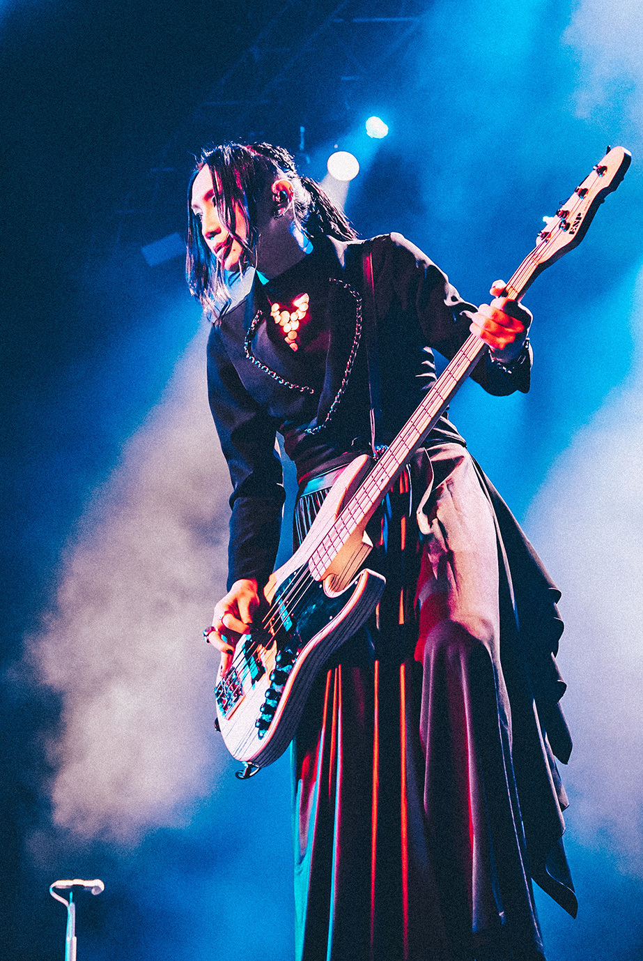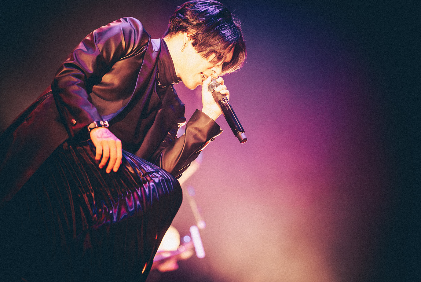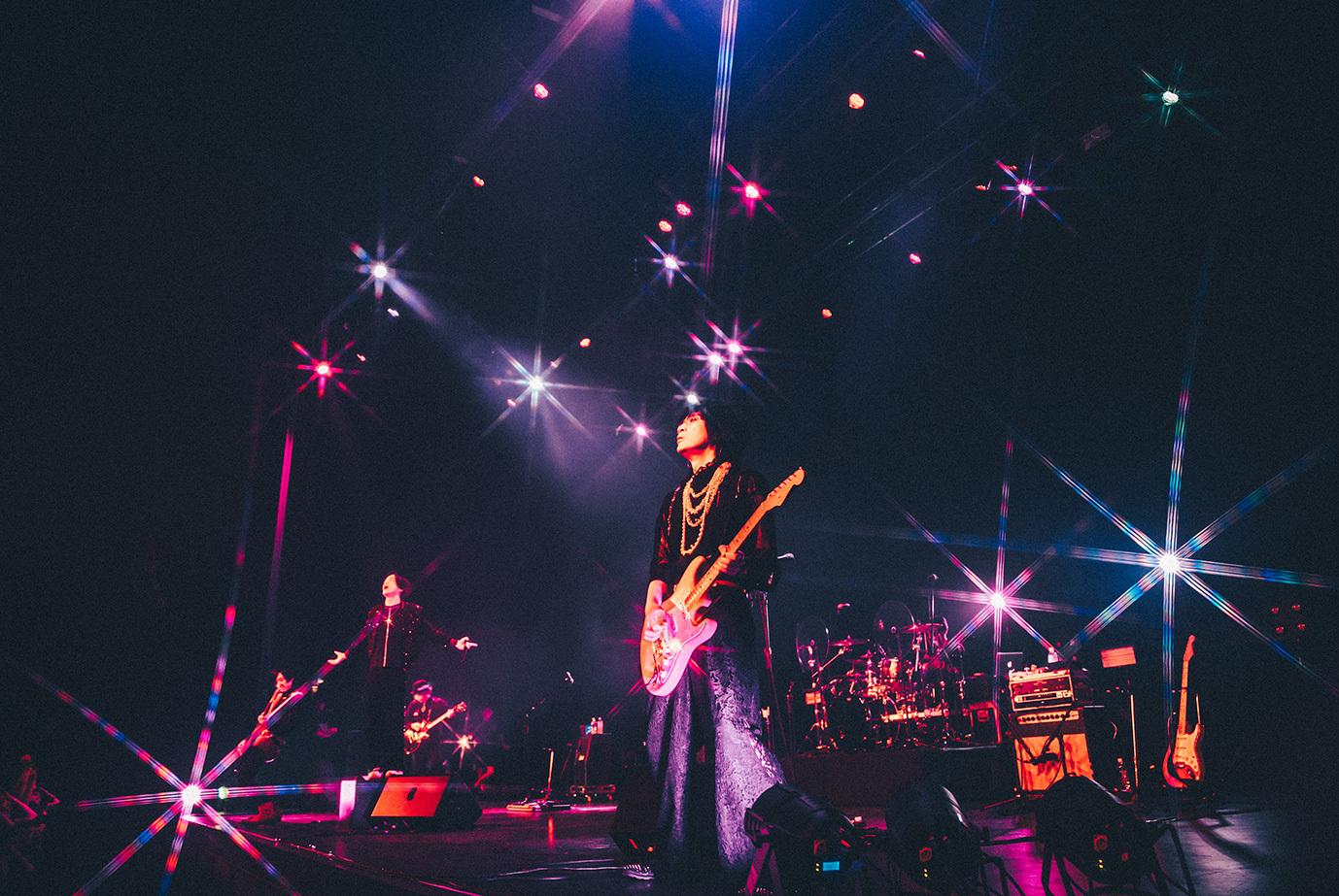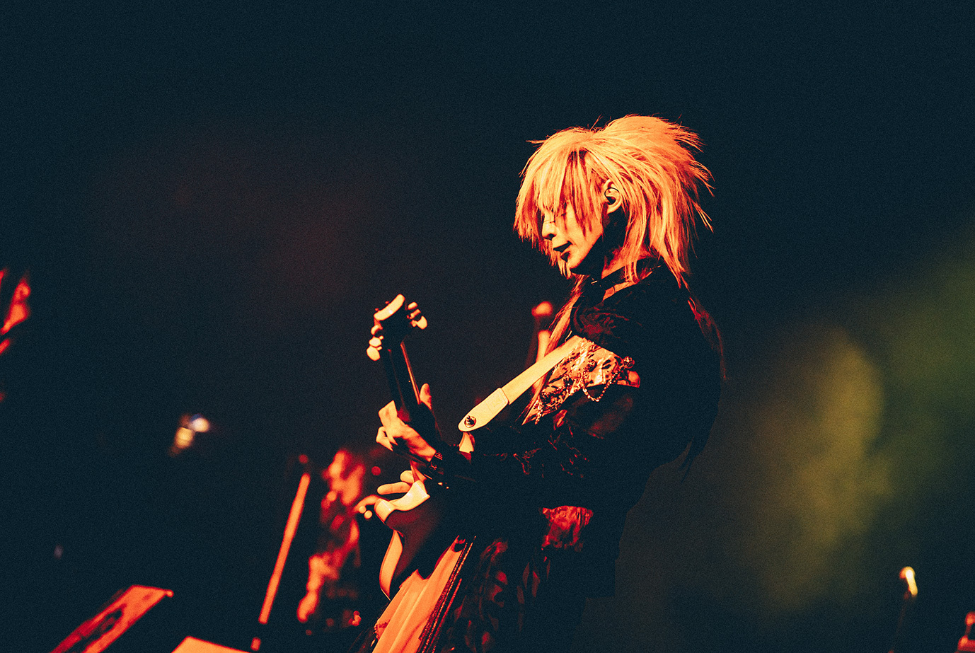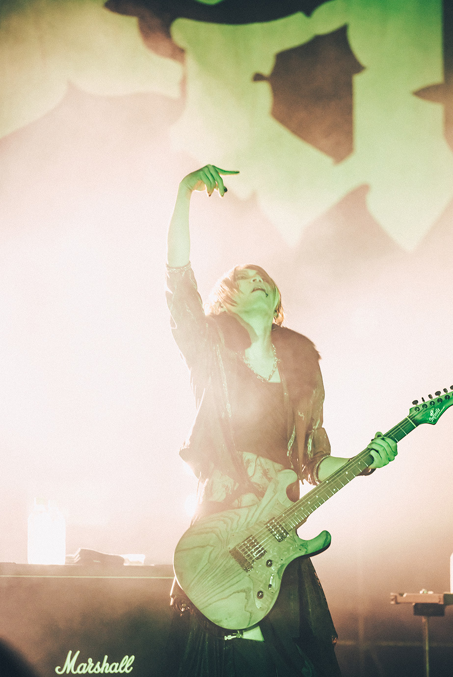 攻撃的なサウンドと悲哀を帯びたメロディの「Rosario-ロザリオ-」、トリッキーなリズムパターンと様々な声色を使い分けるヴォーカルアプローチが光る「Payment of vomiter」、ステージが真っ赤に染まる中、ドラミングを合図にバックライトが瞬き、バンドインする演出がドラマティックだった「Jealousy」と、中盤では魅せるナンバーが並んだ。