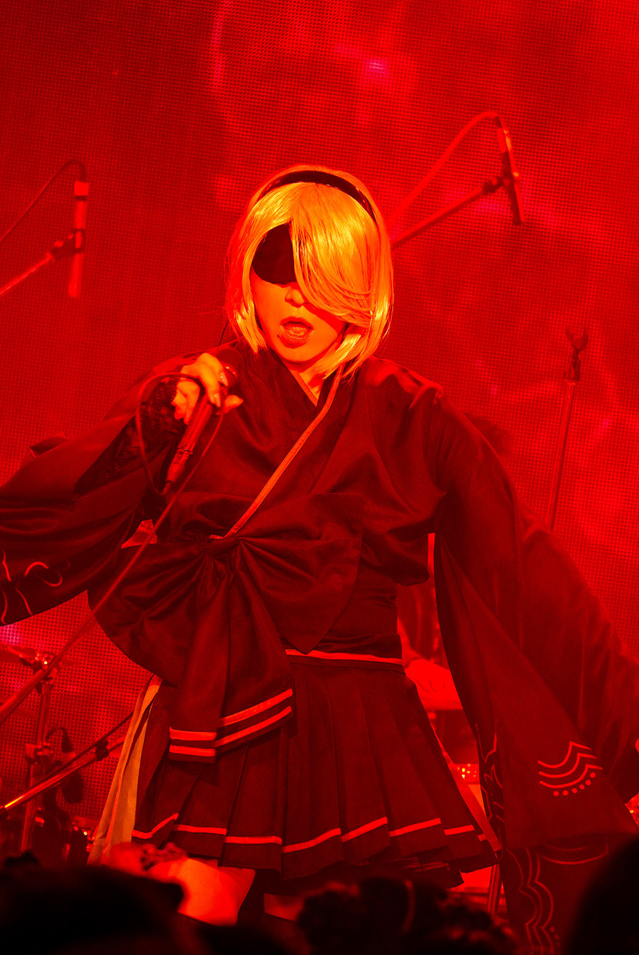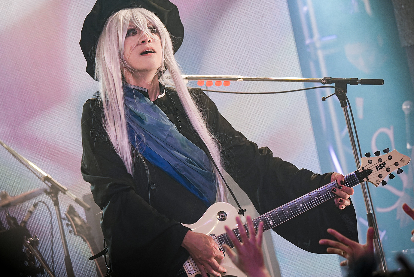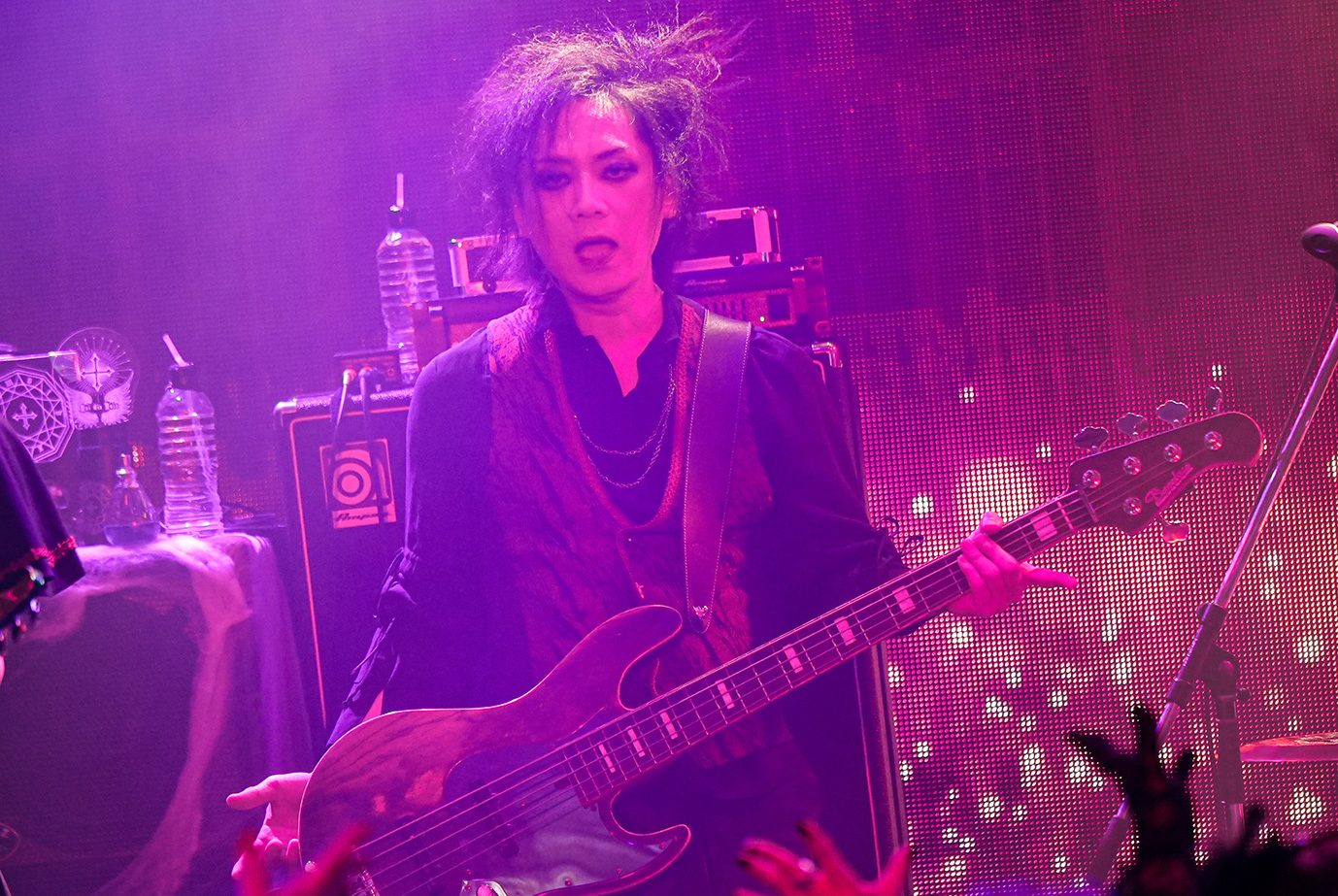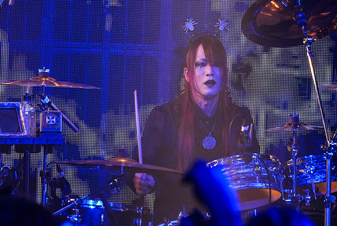 「離さねぇかんな、なめたらあかんぜよ!」とRyuxが煽る。『Night Breed』では、さらにデスでダークでエクストリームな音を、爆走する楽曲に乗せて彼らは叩きつけてきた。強烈なリフを刻むメンバーたち。Sethに寄り添うように、女形ドレス姿のManaがフロントでギターを弾く姿も麗わしい。攻撃性を満載した荘厳シンフォニックな姿に興奮を隠せない。Sethの煽りの応酬へ食らいつこうと、観客たちも魂が奮い立つまま暴れ続けていた。