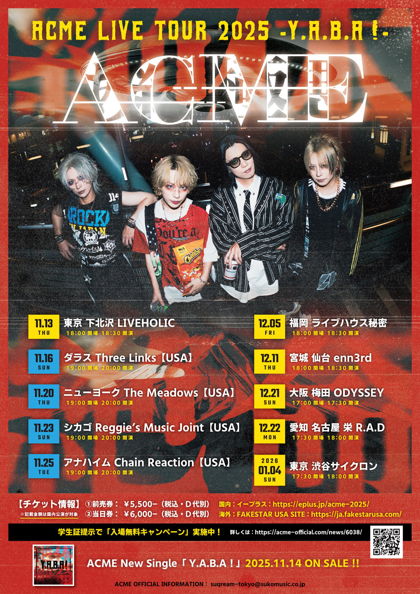 ●ACME Live Tour 2025 -Y.A.B.A !-【学生証提示で入場無料キャンペーン (国内のみ適用)】